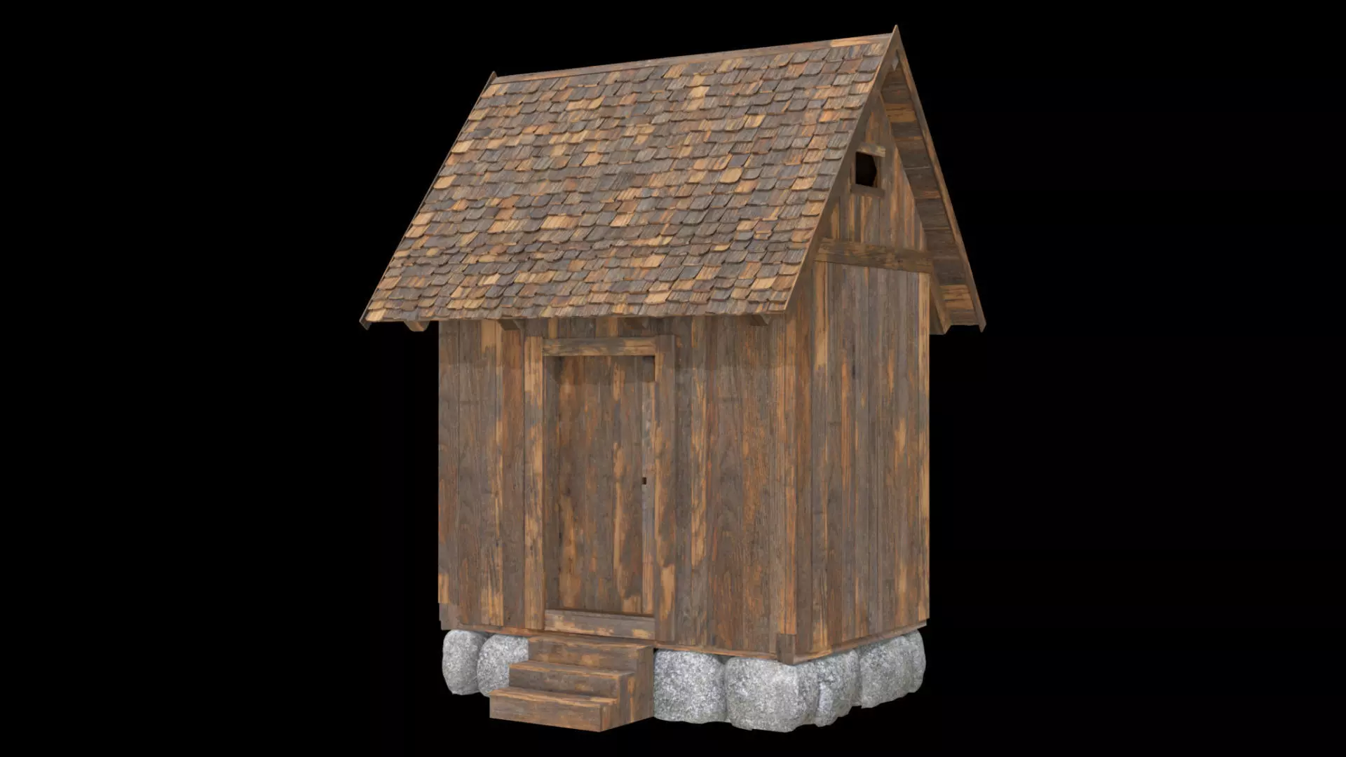 Wooden Cottage that can be entered and has basic interior like an iron stove. There are three LOD version, LOD0 is fully detailed with interior, LOD1 has outer details preserved but no interior and LOD2 for distance has minimum geometry and details, the different LOD versions can be found in the blend file and exported FBX versions.