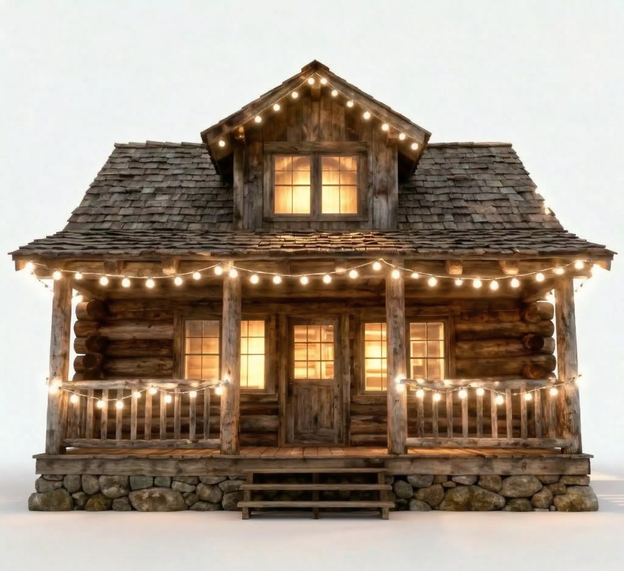 High-Fidelity Fairy Light StringA primary feature of this model is the integrated string of glowing fairy lights draped across the porch eaves and railings. Each individual bulb is modeled to emit a warm, golden glow, providing a clear visual indicator of a lived-in and festive atmosphere while adding significant atmospheric depth and realistic light-spill for night-time scenes.