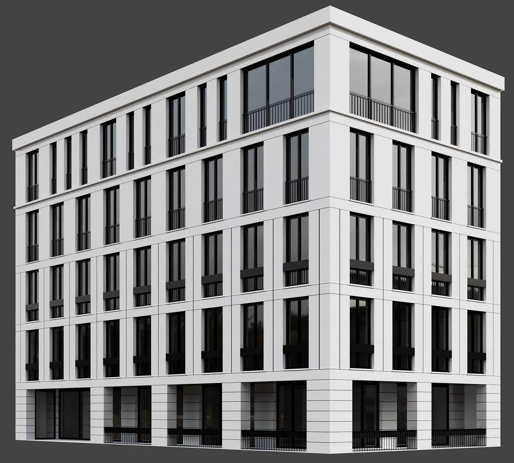 the building includes detailed railing,window frames and...