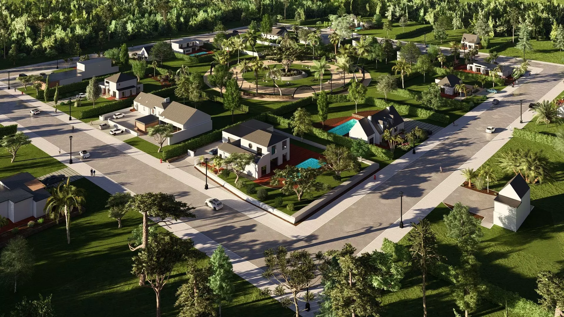 Full SketchUp 3D modelLumion-ready with complete vegetation and graphics20 detailed modern housesSpacious central parkSecure gated community layoutClean topology and optimized geometry
