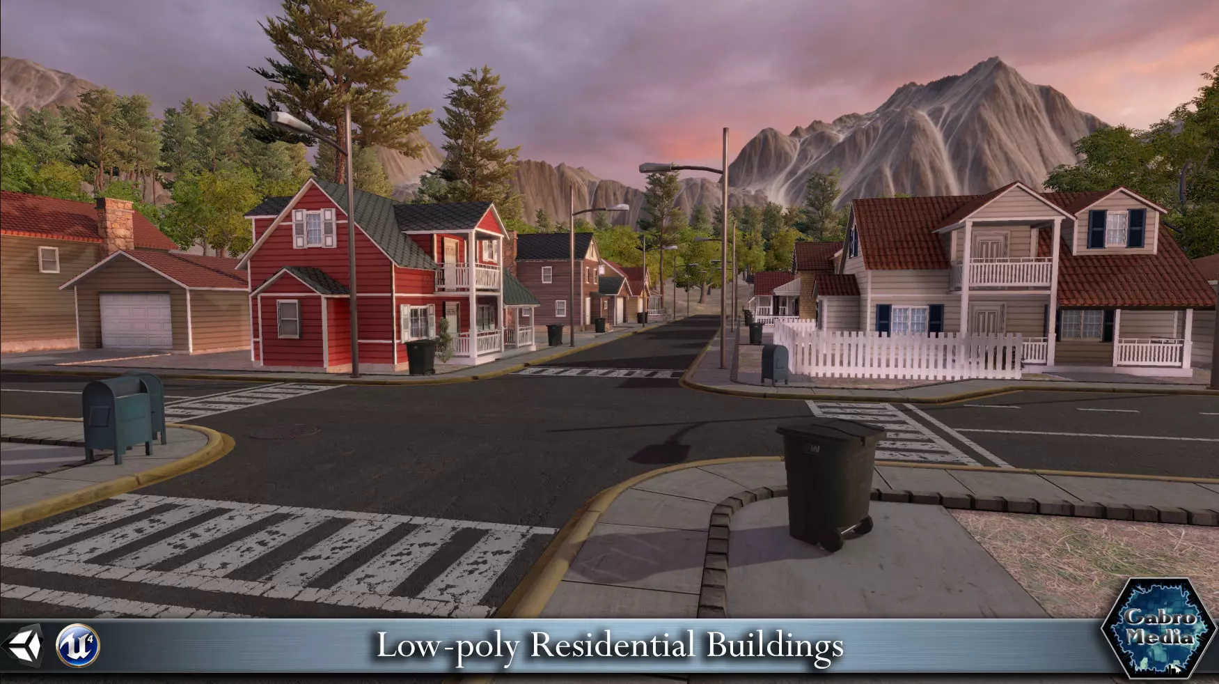 All models use high quality PBR textures, using the metalness workflow. The package is performance friendly, suitable for mobile - each house is a few hundred polygons only, and all 60 buildings share 6 materials.