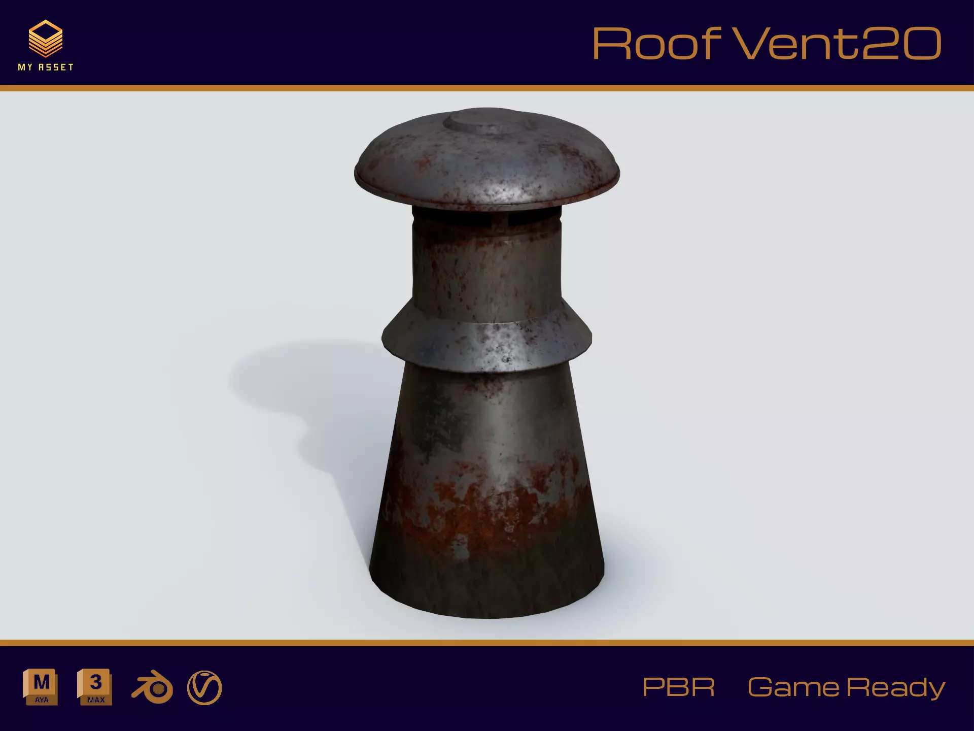 A highly detailed 3D model of Roof Vent .very high detail and realistic . tre texture resulattion 1K 2K 4k set is provided . 3ds max and maya files have applied with V-Ray materials . blender have applied with PBR materials .