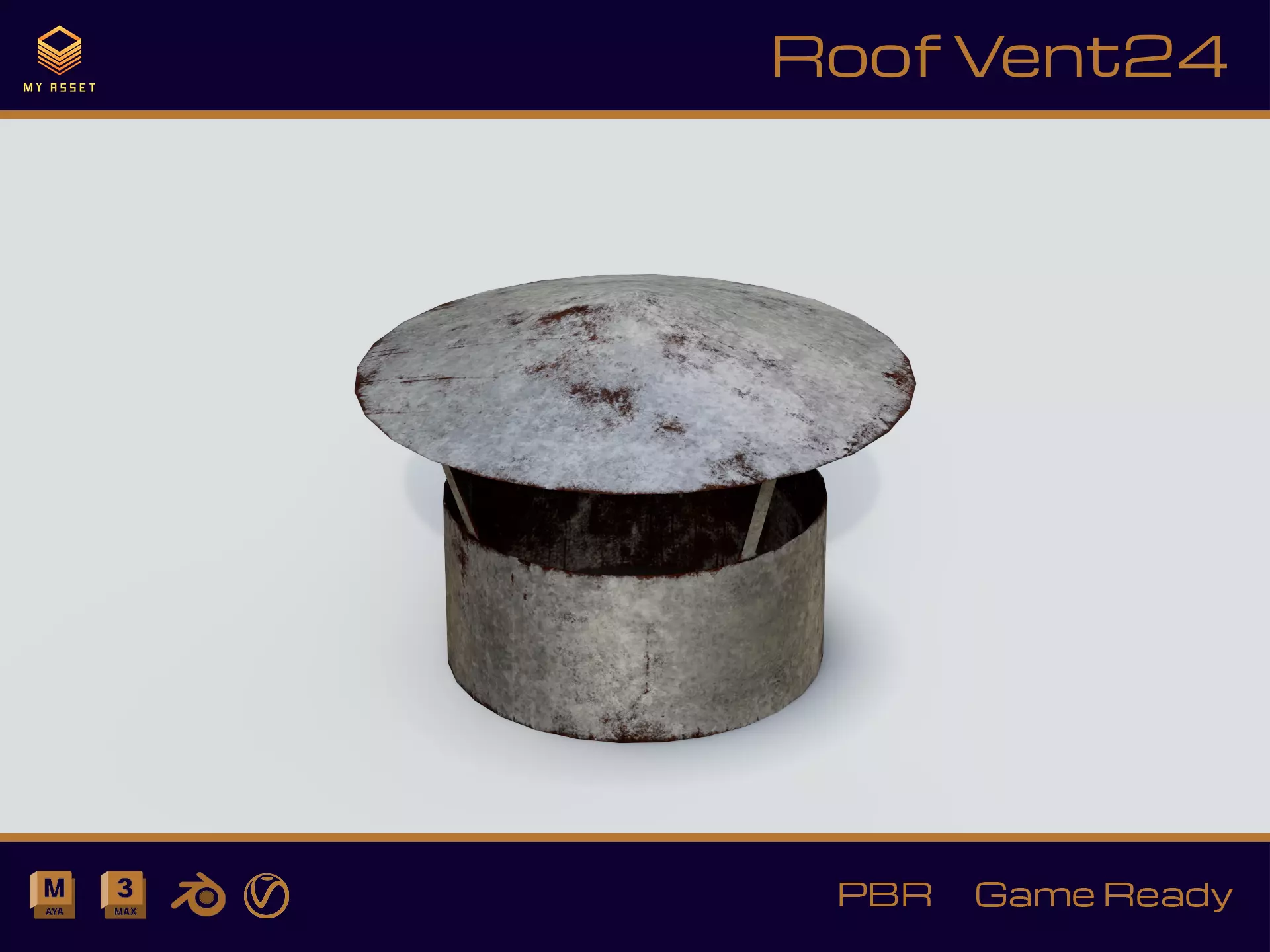 A highly detailed 3D model of Roof Vent .very high detail and realistic . tre texture resulattion 1K 2K 4k set is provided . 3ds max and maya files have applied with V-Ray materials . blender have applied with PBR materials .