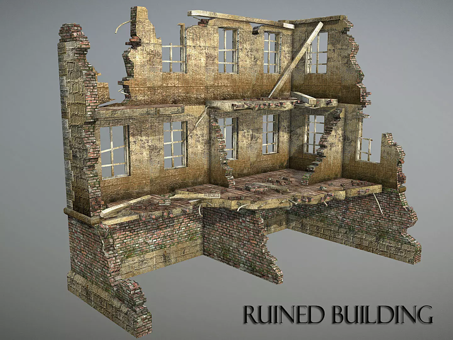 Game-ready building 3D model with 3 LOD stages and 5 materials.