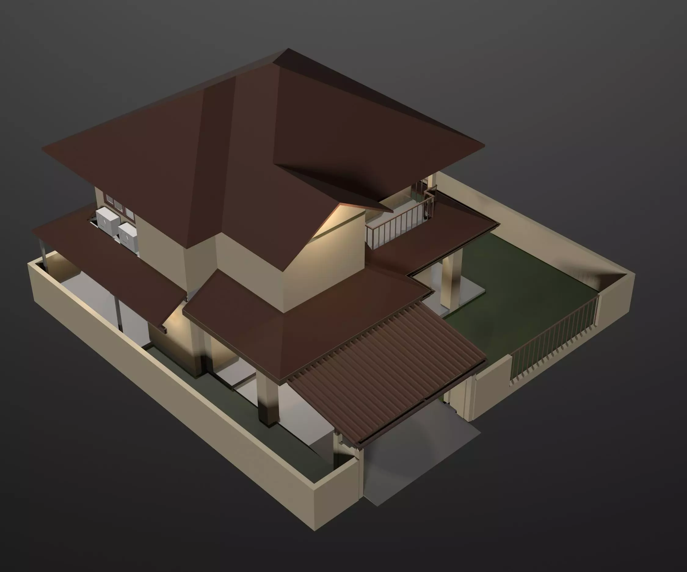 The model has material settings that define how surfaces look (color, shine, transparency, etc.).