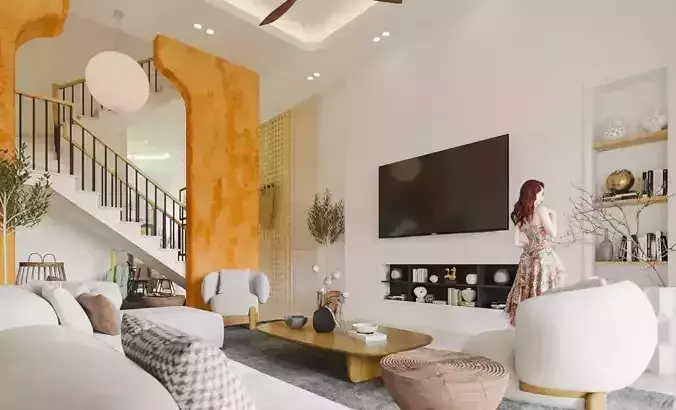 The render images have been enhanced for visual presentation purposes. As a result, some of the elements you see in the renders — such as fine interior details, specific furniture, accessories, or lighting fixtures — may not be included in the actual model file. These differences are intentional, allowing you the freedom to adapt and modify the model according to your creative vision and project requirements. You can add extra details or make changes as you see fit.