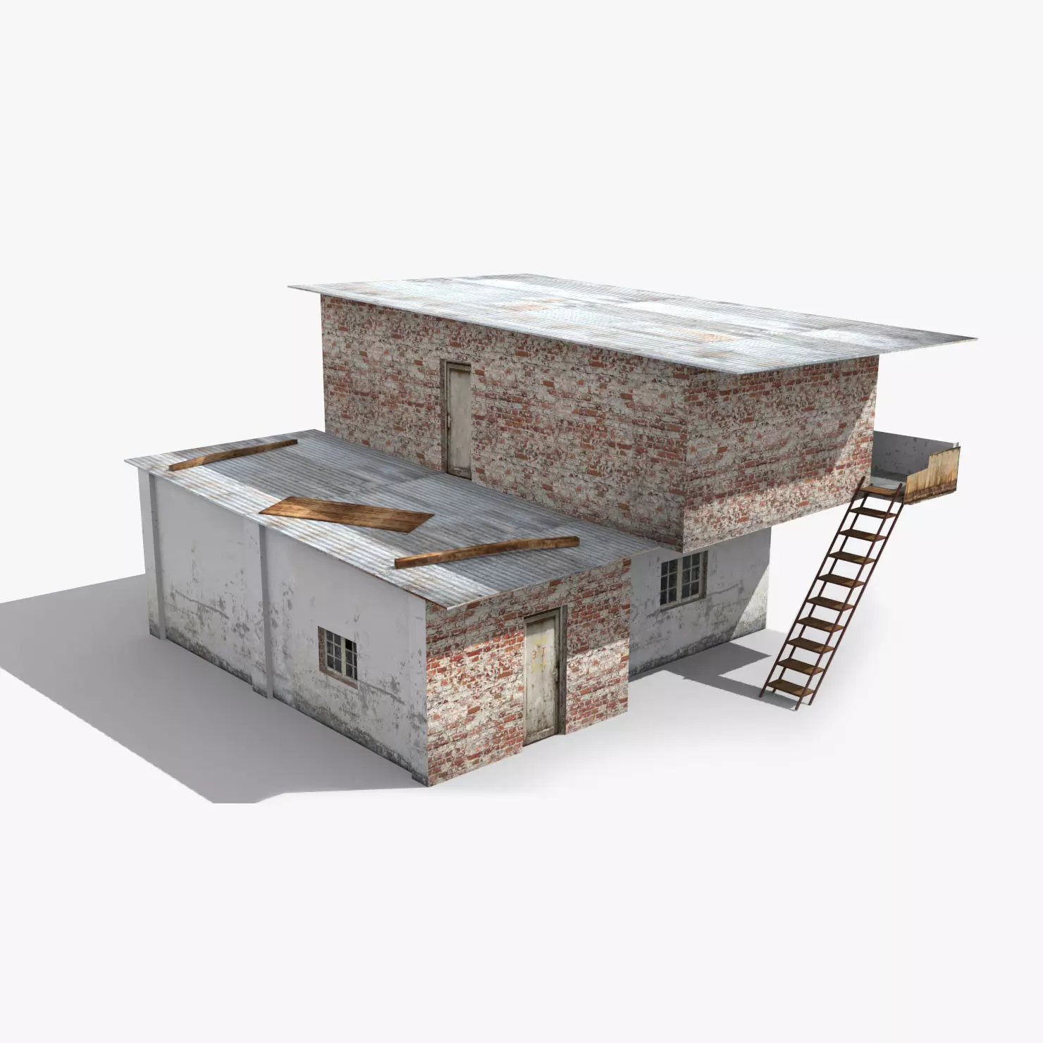 slum h brick house with ladder Low-poly 3D model