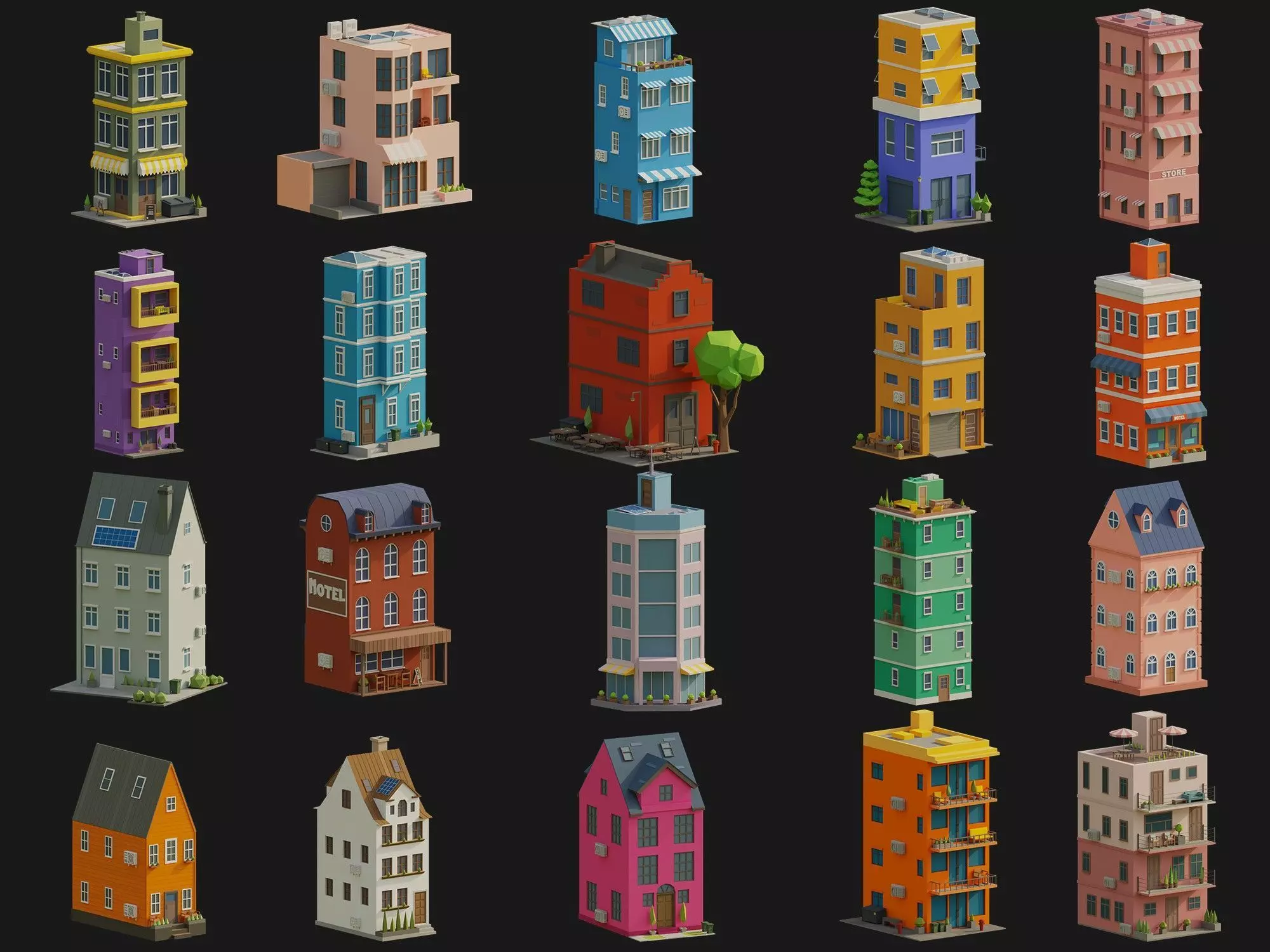 Stylish Buildings Low-poly 3D model