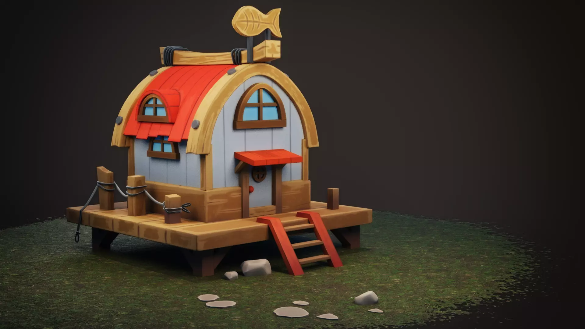 Stylized Boat house made in Blender and rendered using Eevee. Available in FBX and blend format.