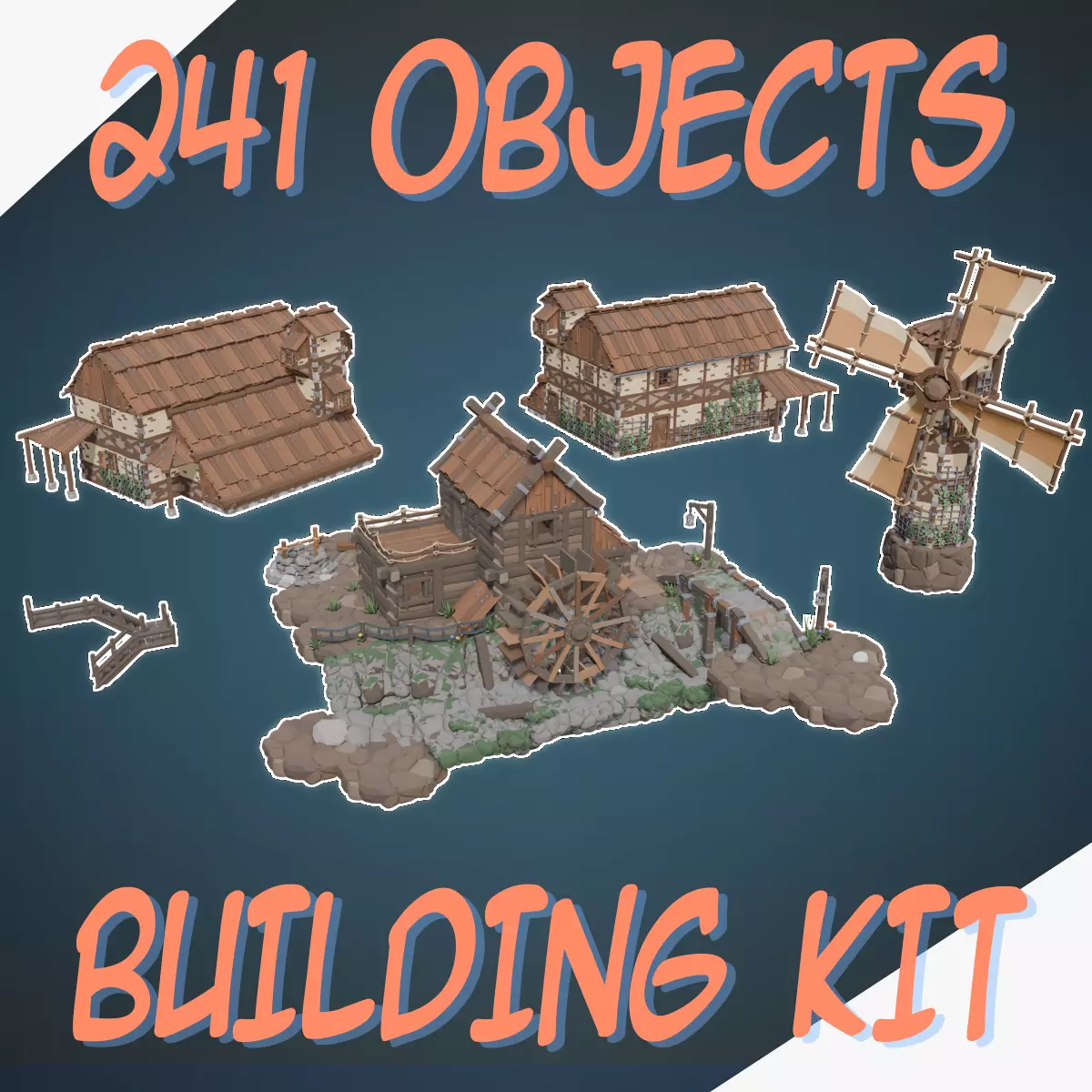 A low-poly model pack consisting of 241 objects for building a stylized town, the texture is a small texture atlas of size 64x64
