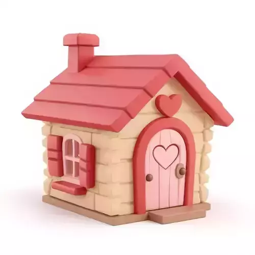 Tagsvalentine house, 3d model, wooden cabin, stylized 3d, game ready asset, heart windows, heart door, pink and cream, romantic design, cartoon building, 3d prop, cozy home, mascot design, 3d toy, casual game, festive asset, love theme, social simulation, digital sculpture, architectural prop