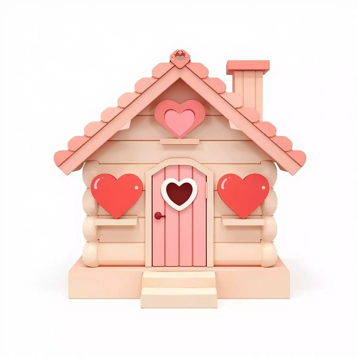 Tagsvalentine house, 3d model, wooden cabin, stylized 3d, game ready asset, heart windows, heart door, pink and cream, romantic design, cartoon building, 3d prop, cozy home, mascot design, 3d toy, casual game, festive asset, love theme, social simulation, digital sculpture, architectural prop