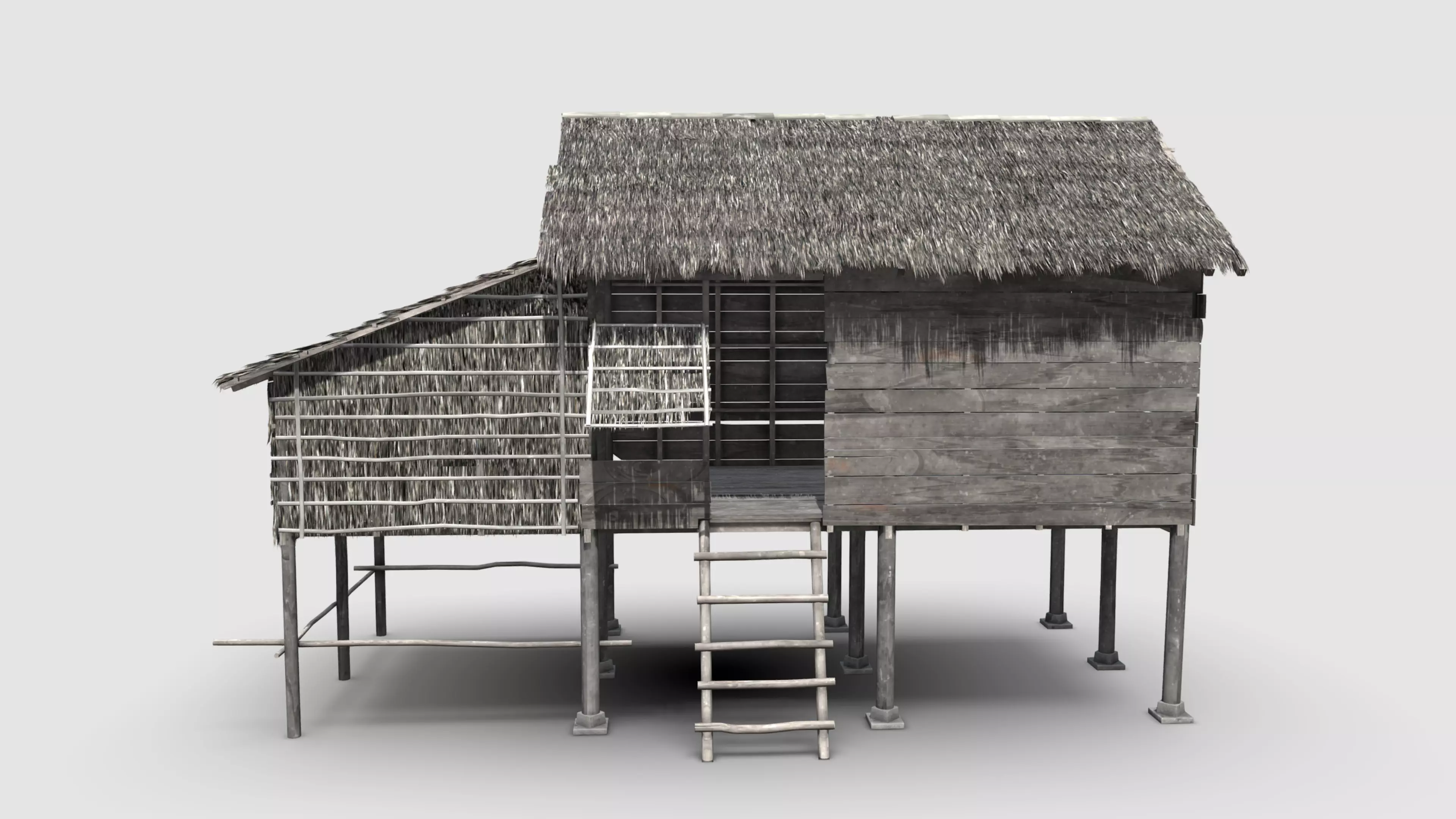Thatch hut built with wood, bamboo, and thatch. This is high polygon 3d model.