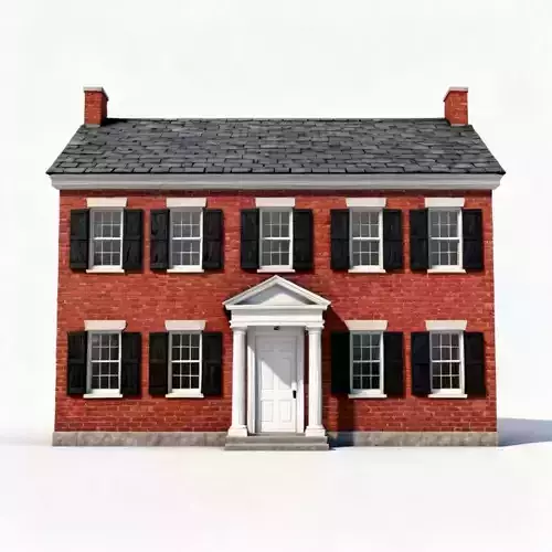 The Overall Concept This asset is a classic two-story home designed in the Colonial Revival style. This symmetrical, formal look is extremely common in American suburbs and historical towns, representing a stable and traditional family residence.