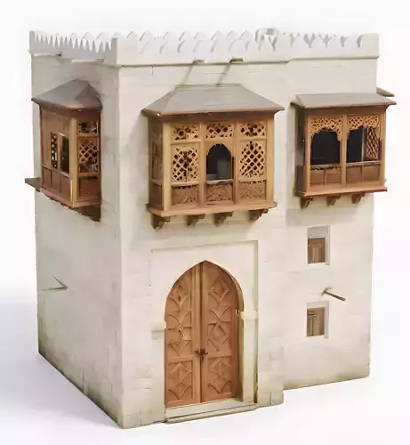 The Overall Concept This asset is a historic multi-story home designed in the traditional style of the Middle East or North Africa. It is perfect for creating a desert city, a historical market (souq), or an ancient village scene.