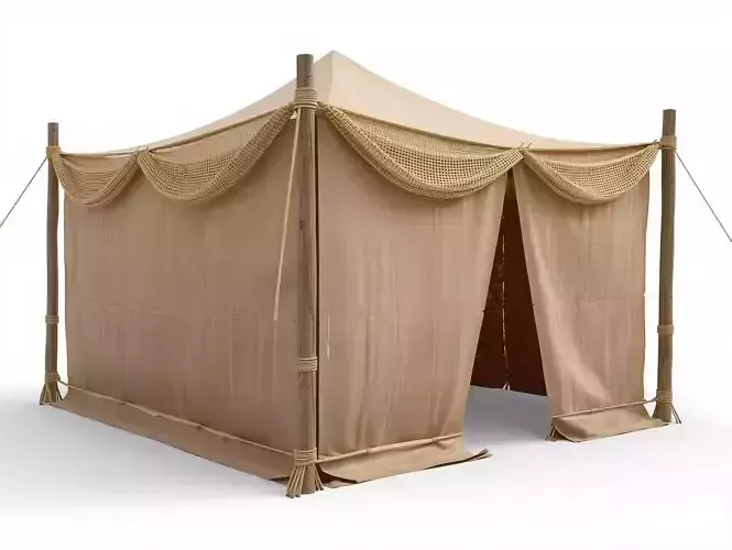 TagsTent Bedouin Traditional WovenFabric Cloth Desert Camp Shelter WoodenPoles Rope PBR Prop GameAsset Detailed 3DModel Architecture