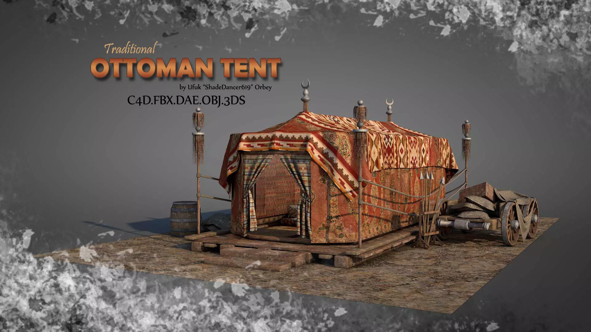 TEX.RAR has 19 texture JPG images for otmtent(SOURCE).C4D file.