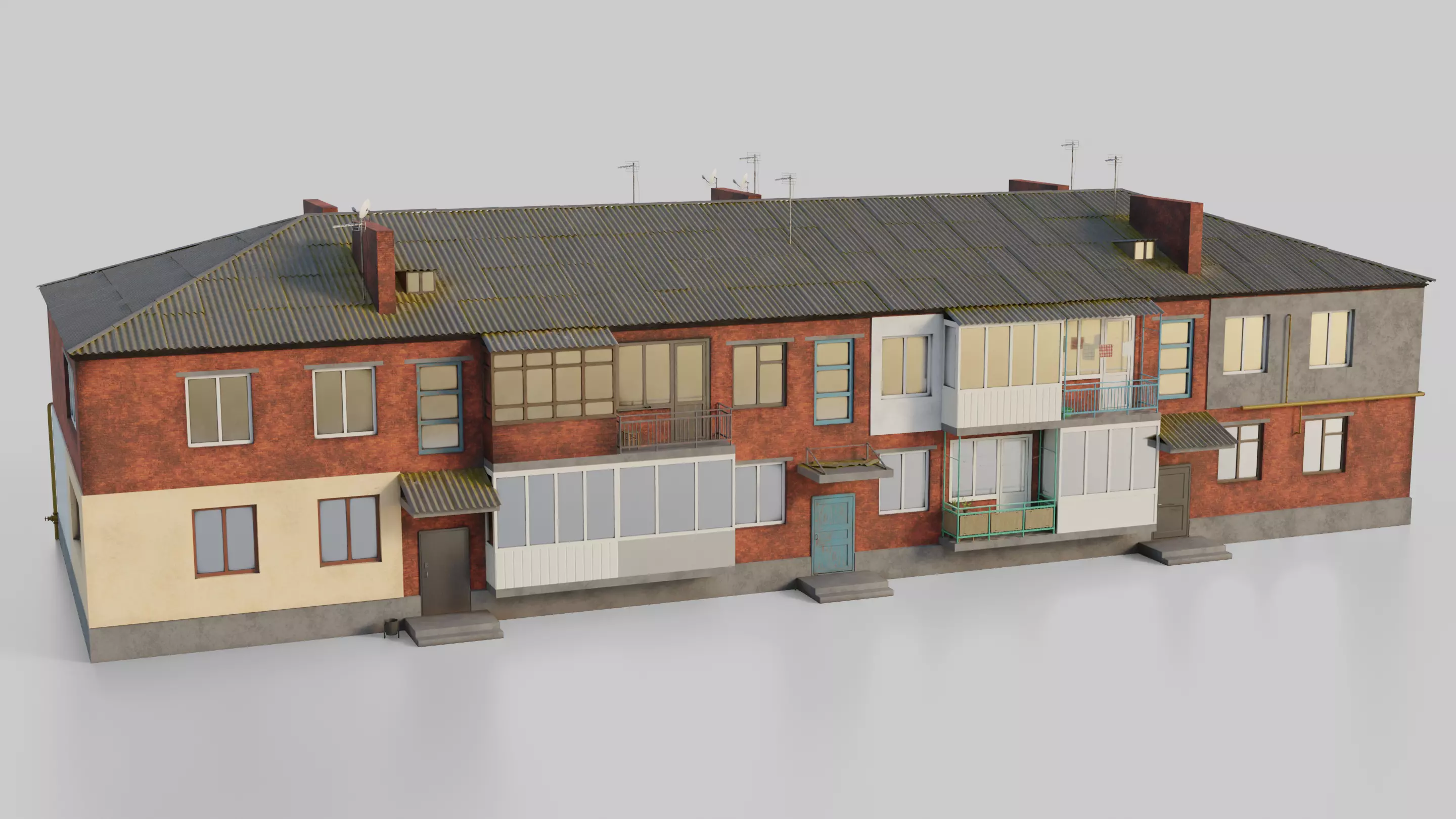 Typical Ukrainian two-story apartment buildingOriginally created with Blender