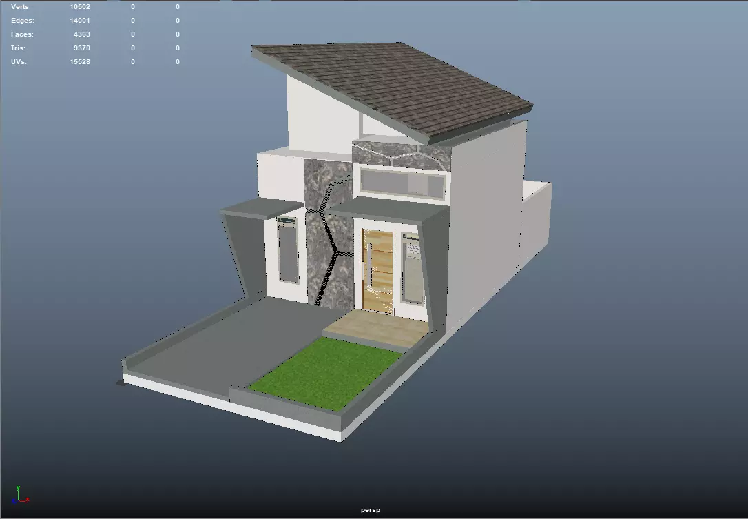 The model has material settings that define how surfaces look (color, shine, transparency, etc.).