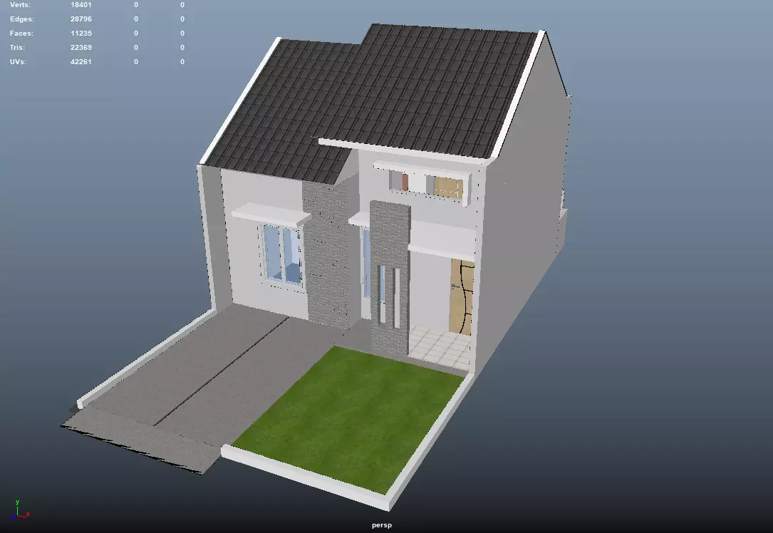 The model has material settings that define how surfaces look (color, shine, transparency, etc.).