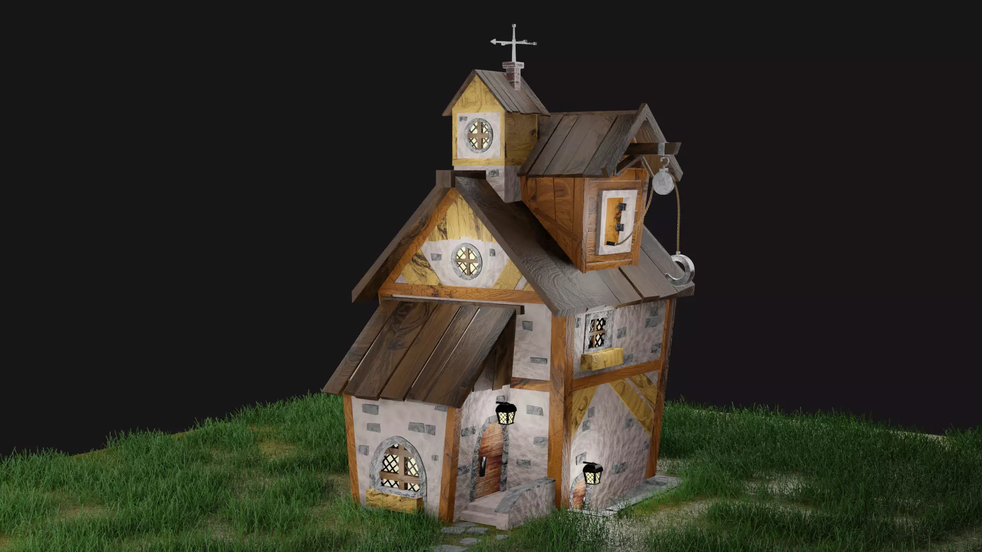The Village House is a high-quality photorealistic 3D model that will improve the detail and realism of any of your rendering projects. The model has a fully textured, detailed design that allows close-up visualization, and was originally modeled in Blender 2.93.1.