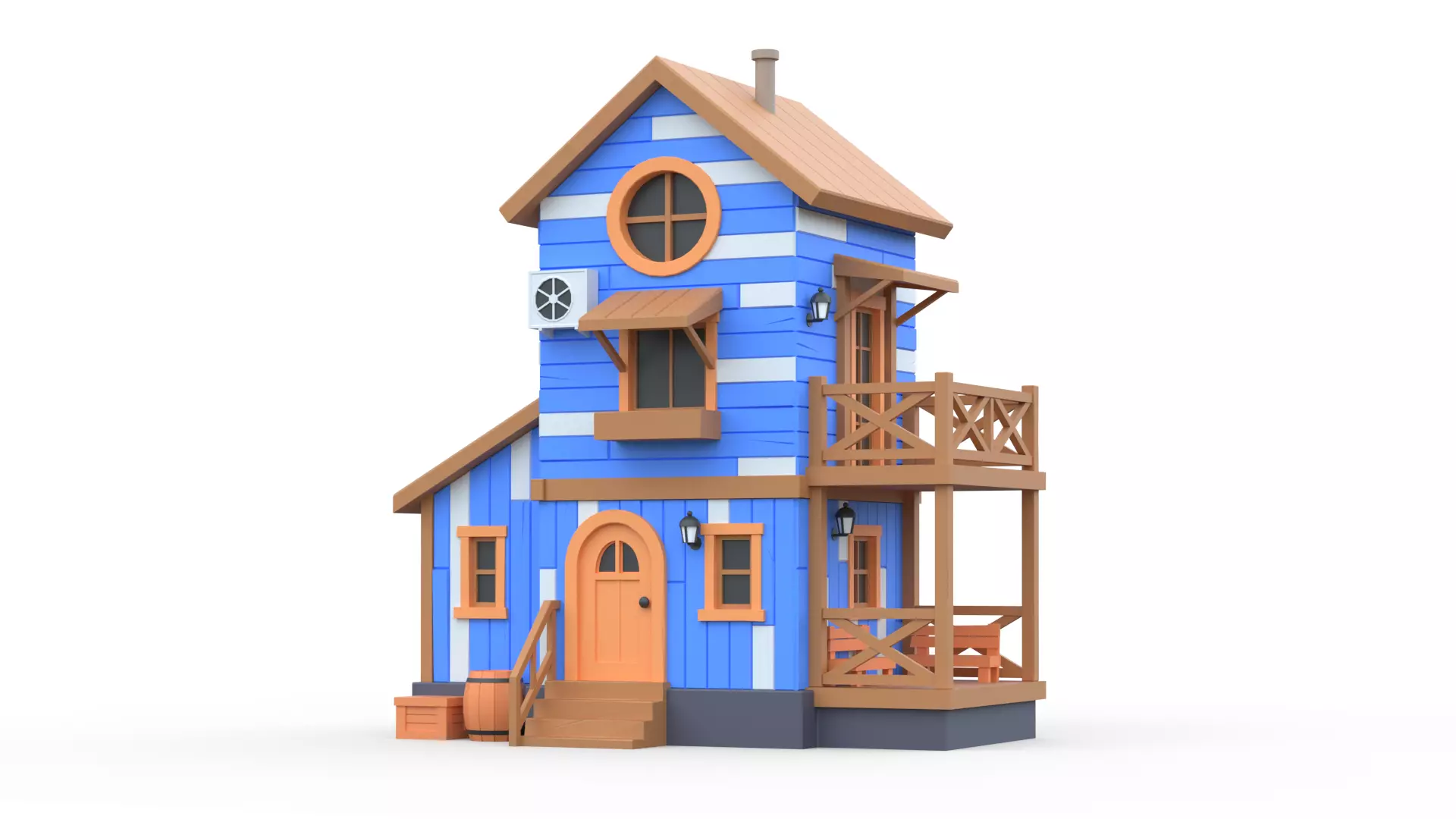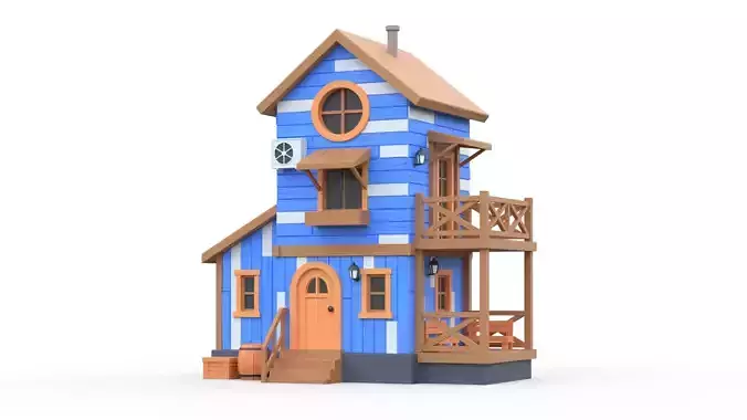 Wooden House A with UV Low-poly 3D model