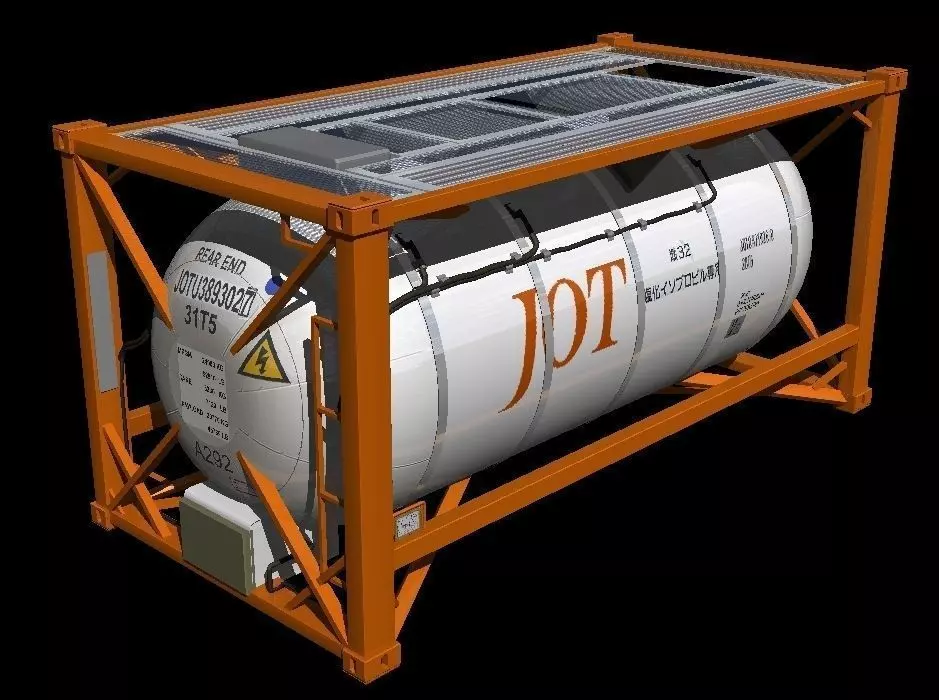 20フィートサイズの液体用運輸コンテナーです。鉄道、トレーラー、コンテナ船で運ばれ、ヤードや港のバースで一時保管後に通関が通りしだい各工場へ輸送されます。本品は1パーツモデルです、背景やトレーラーの荷台に置いて演出して下さい、通常のコンテナー群の中に置くとアクセントに成って良いかも知れません。It is not a stl file for 3D printing.