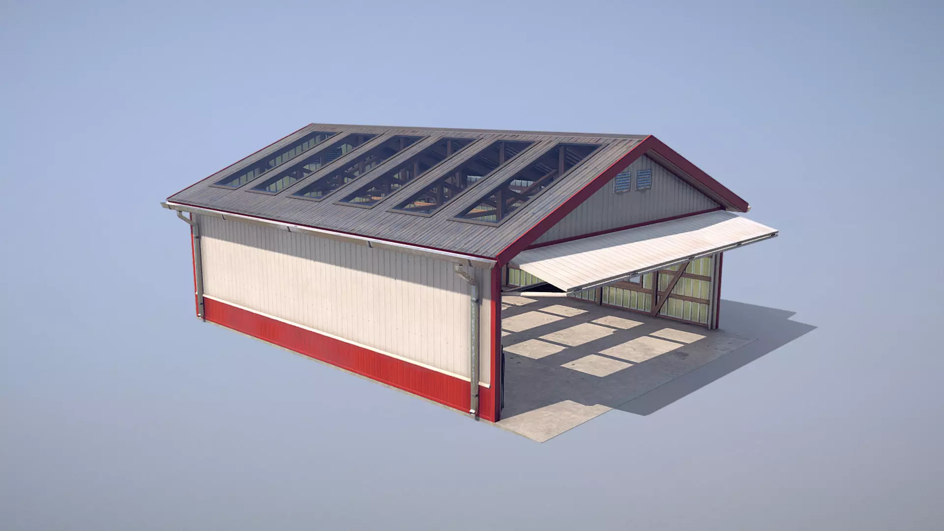 Airfield Hangar 12m Vr2 RED Low-poly 3D model