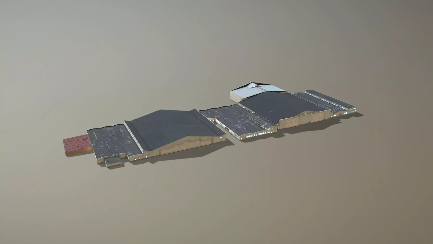 Low-poly 3D model Airport Hangars with LODs