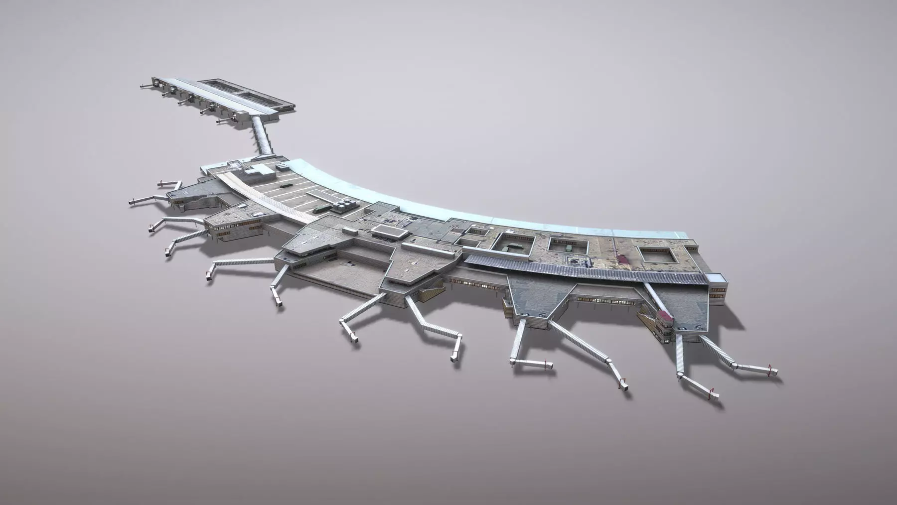 Airport Terminal LEMD Terminal1 Madrid Barajas Airport Low-poly 3D model