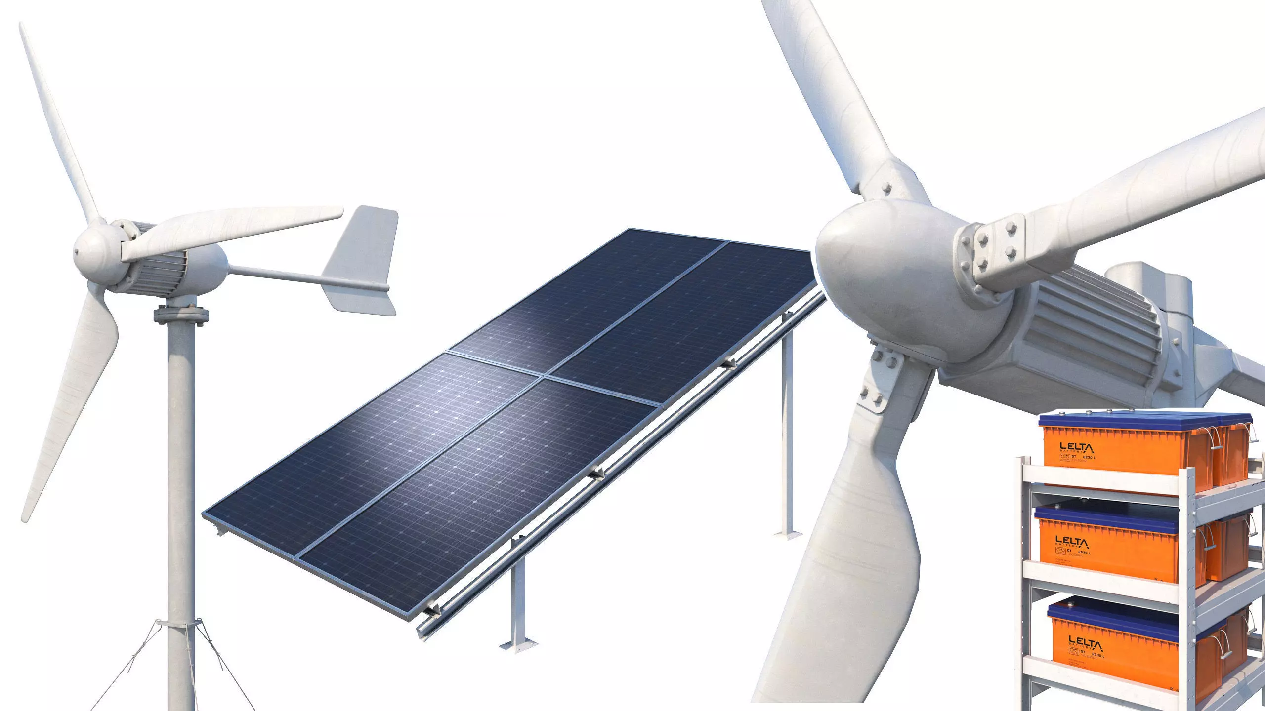Mid-poly 3d models for arranging an autonomous hybrid electrical installation on your private plot.