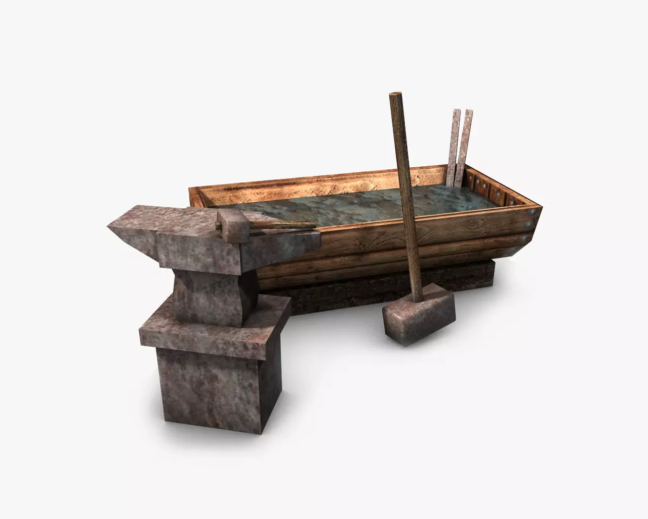 3d model of an anvil with hammers. Perfect for games, scenes or renders.