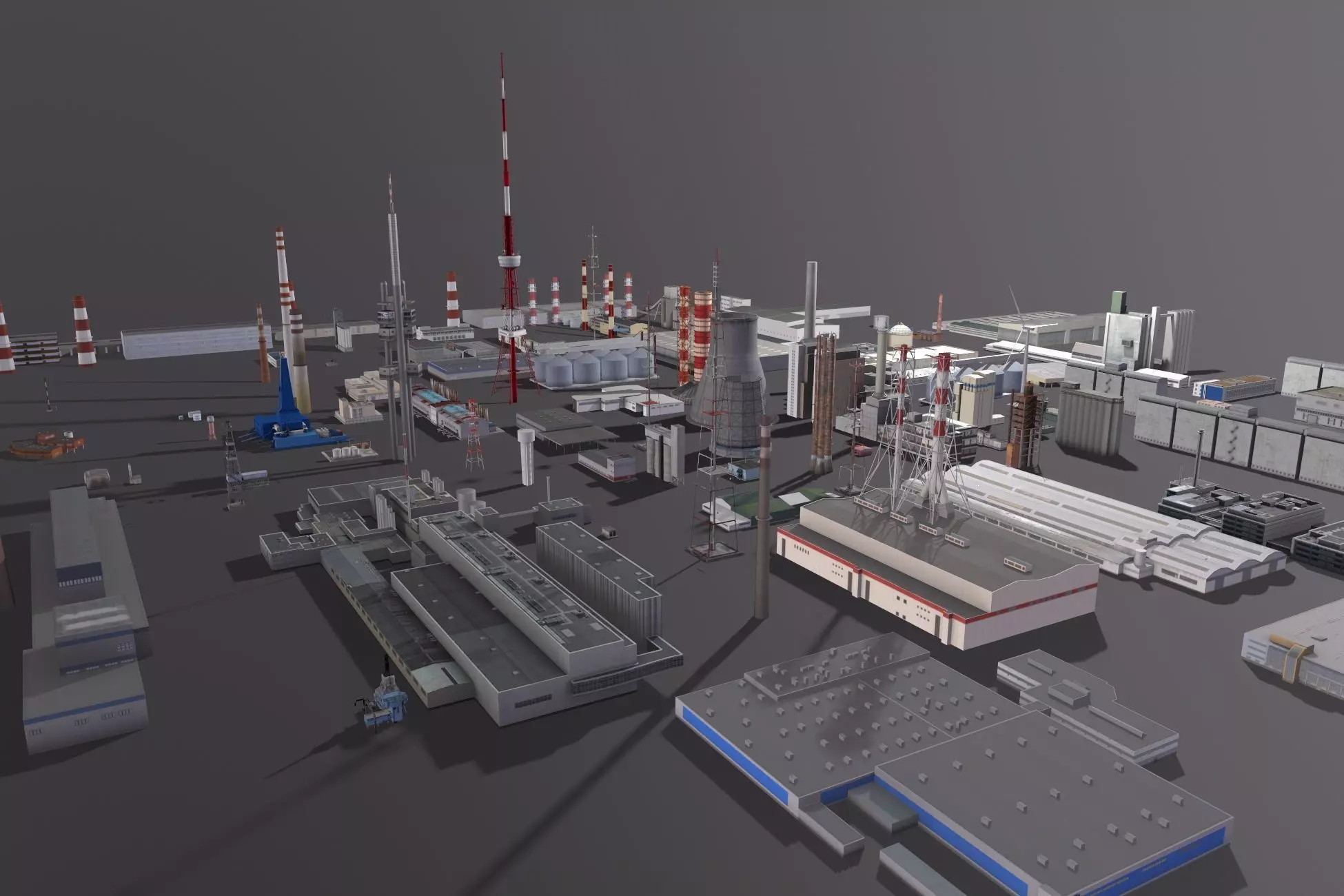 Collection of 100 industrial buildings with LODs