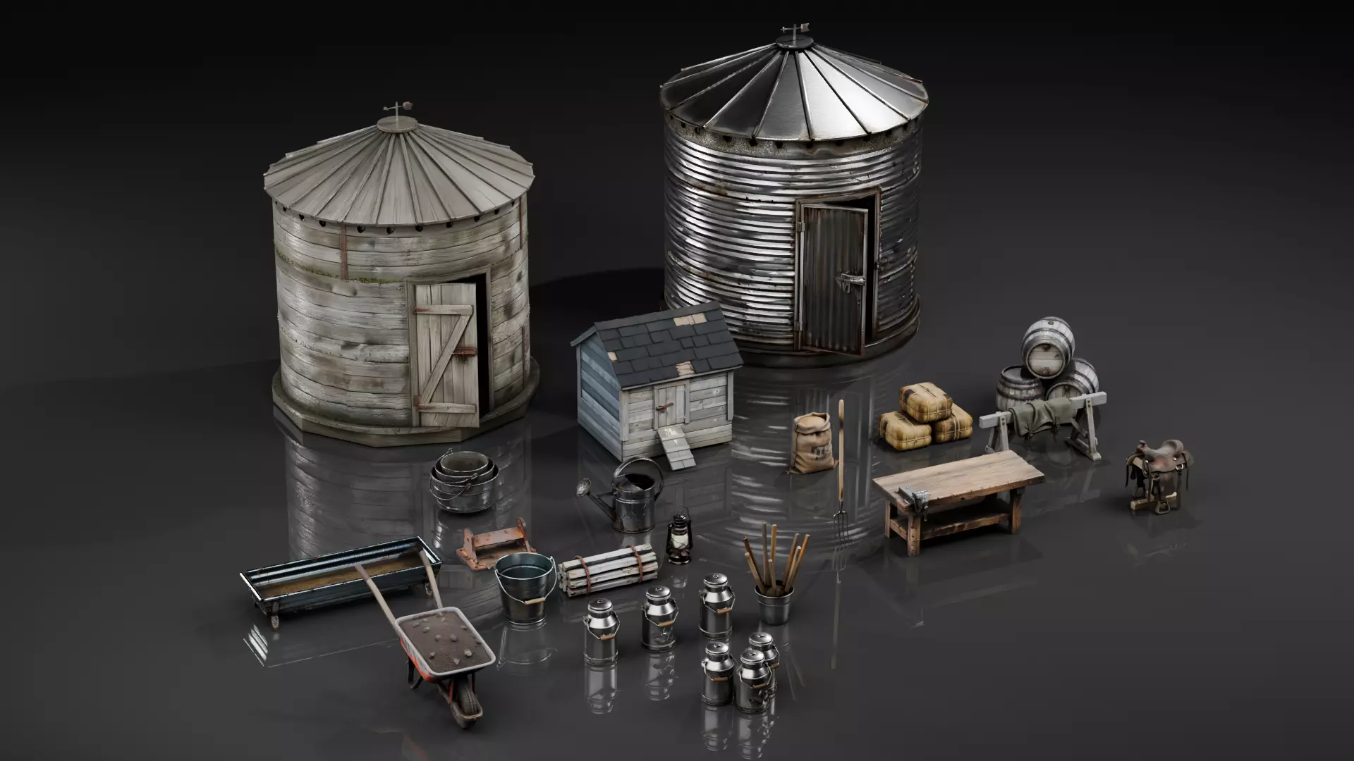This pack gives you everything needed to build a complete,believable farm or barn environment. Every prop showsauthentic rural wear — weathering, rust, dirt, and thekind of honest use marks that make farming environmentsfeel lived-in and real.