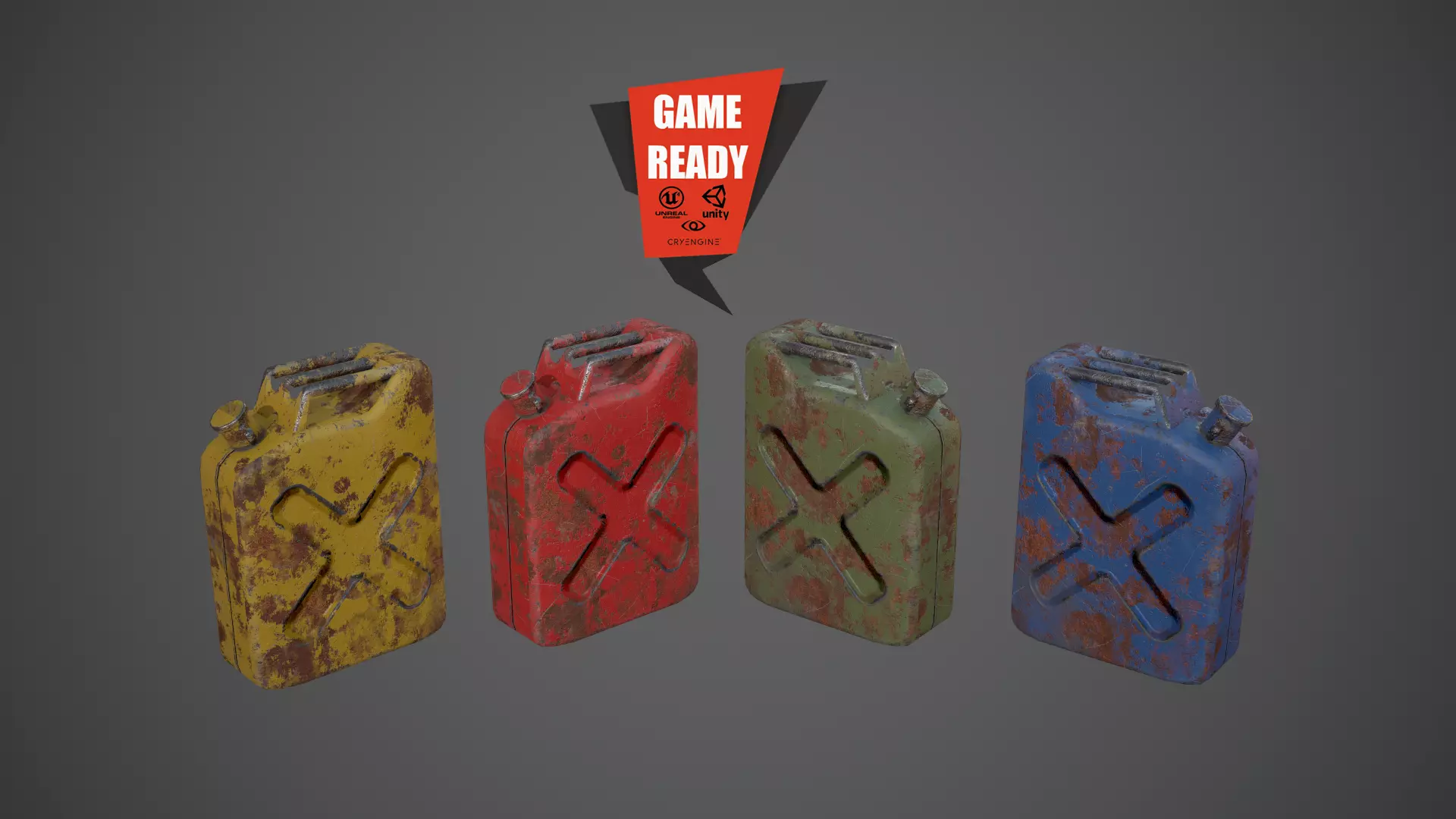 Canister PBR Game Ready Low Poly three rusty gas cans Low-poly 3D model
