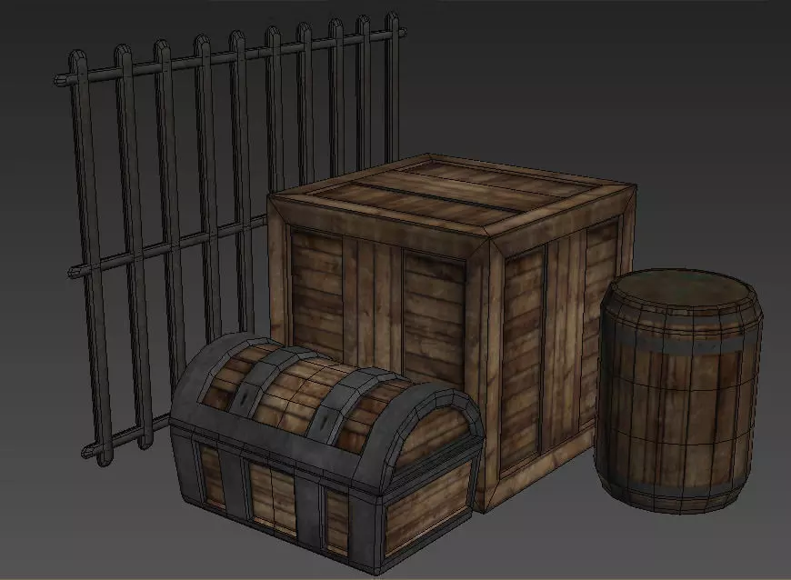 Chest - 483 polygons Crate - 90 polygons Barrel - 236 polygons Fence - 572 ploygons