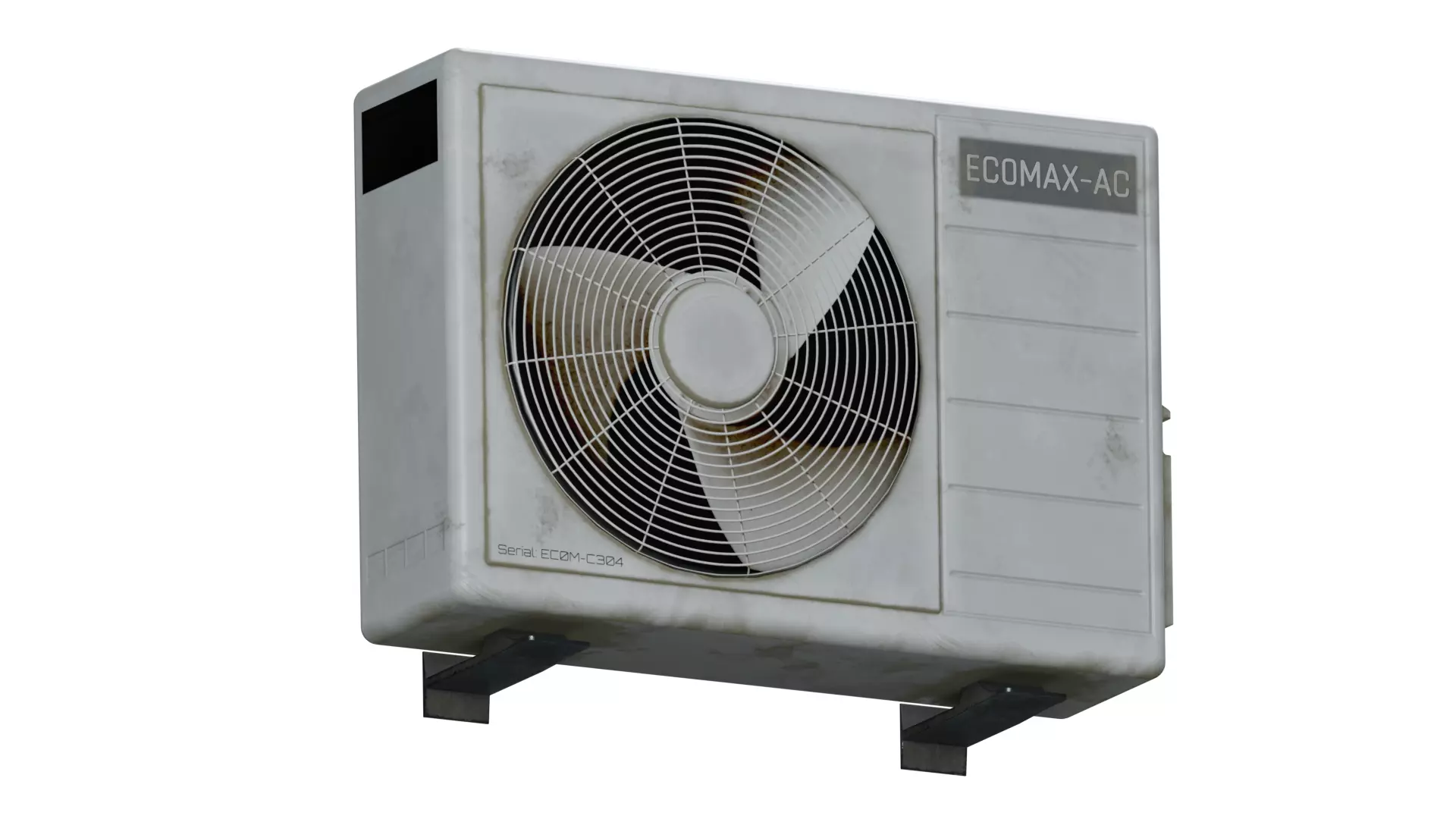 Description: A commonly found AC-Unit with traces of heavy use and wear on it, manufactured by the fictional brand EC0MAX.