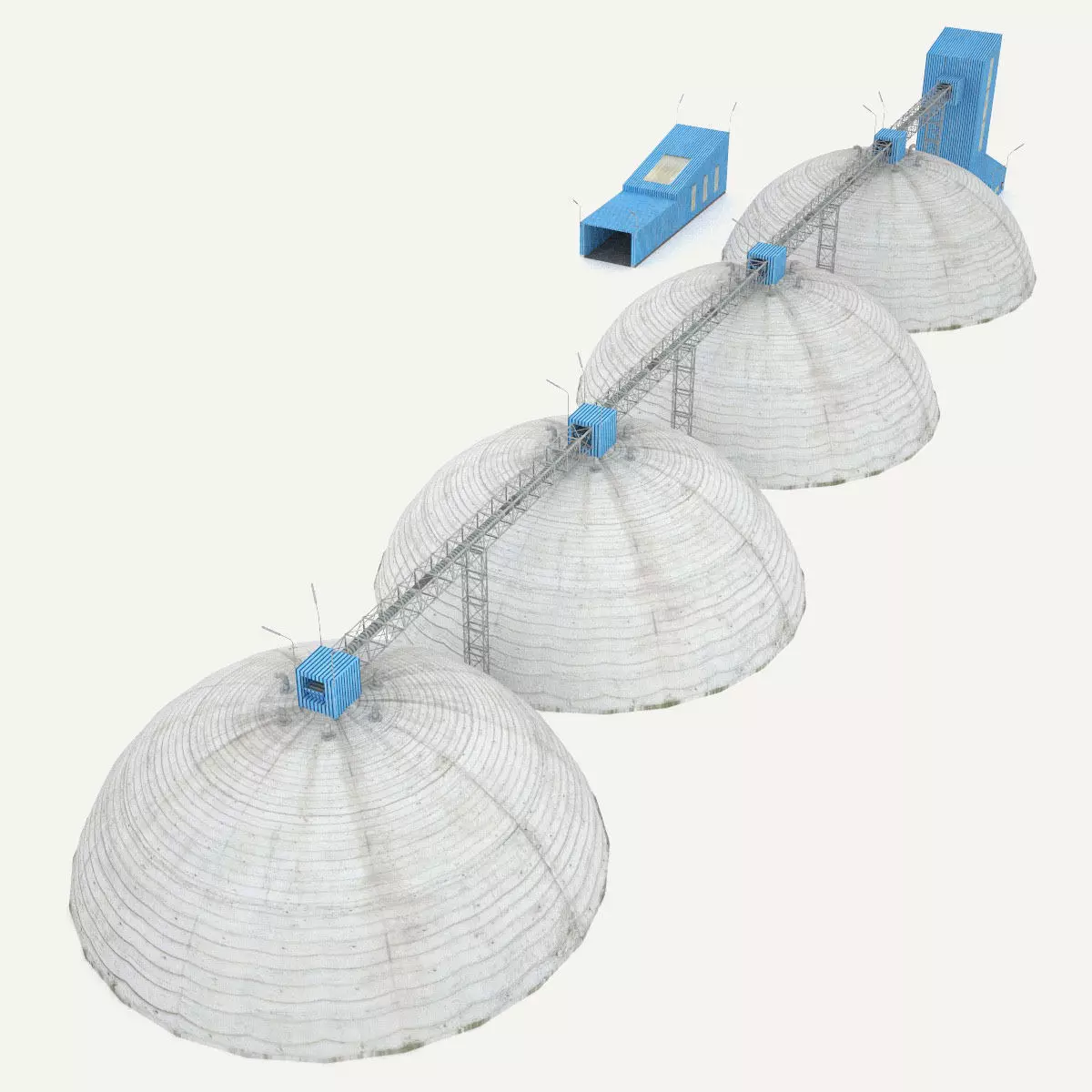 A 4 domes grain silos complex including lights ready for rendering.