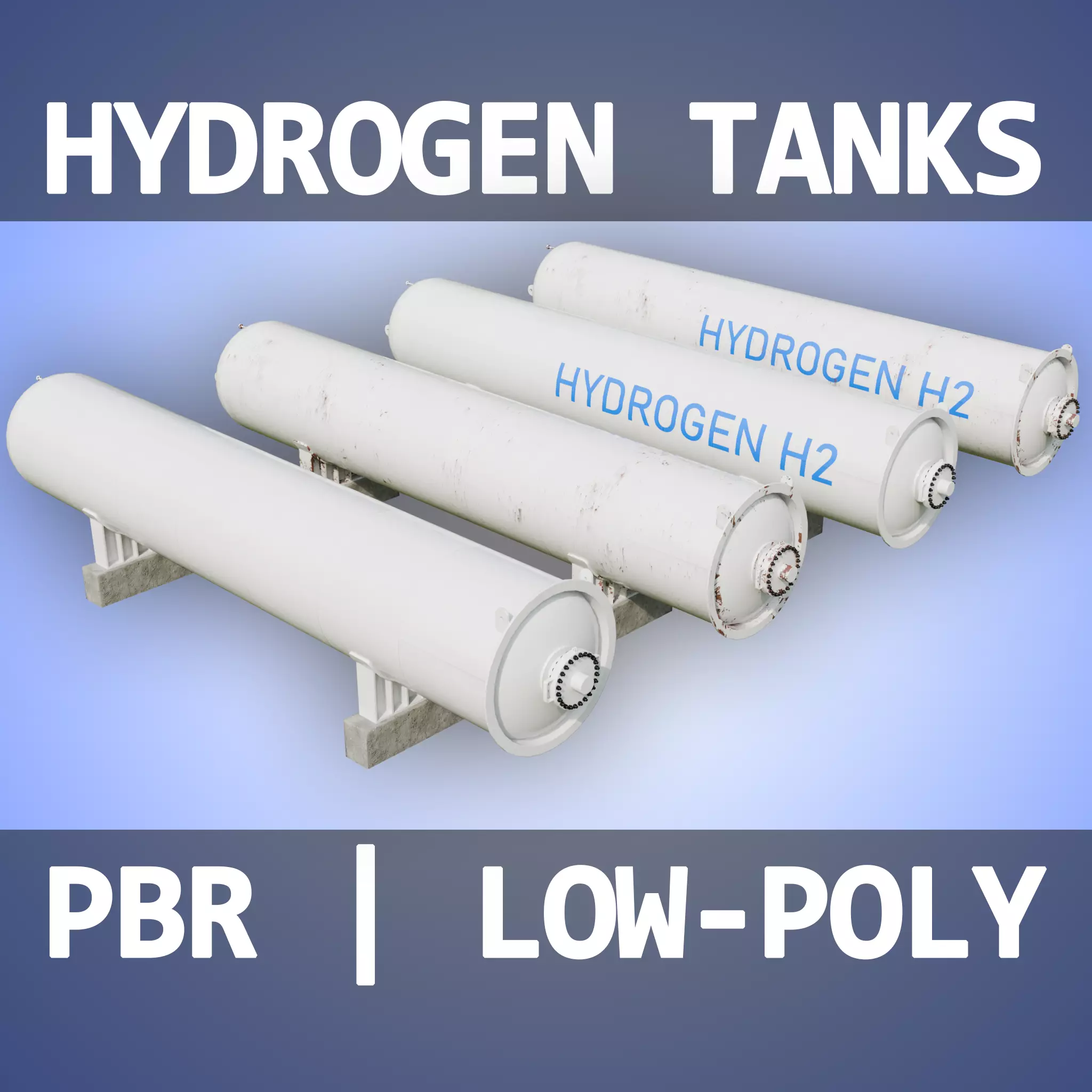 This is a model of a long industrial tank that is used for hydrogen storage. Model is optimized and detailed. There are 4 texture variants.