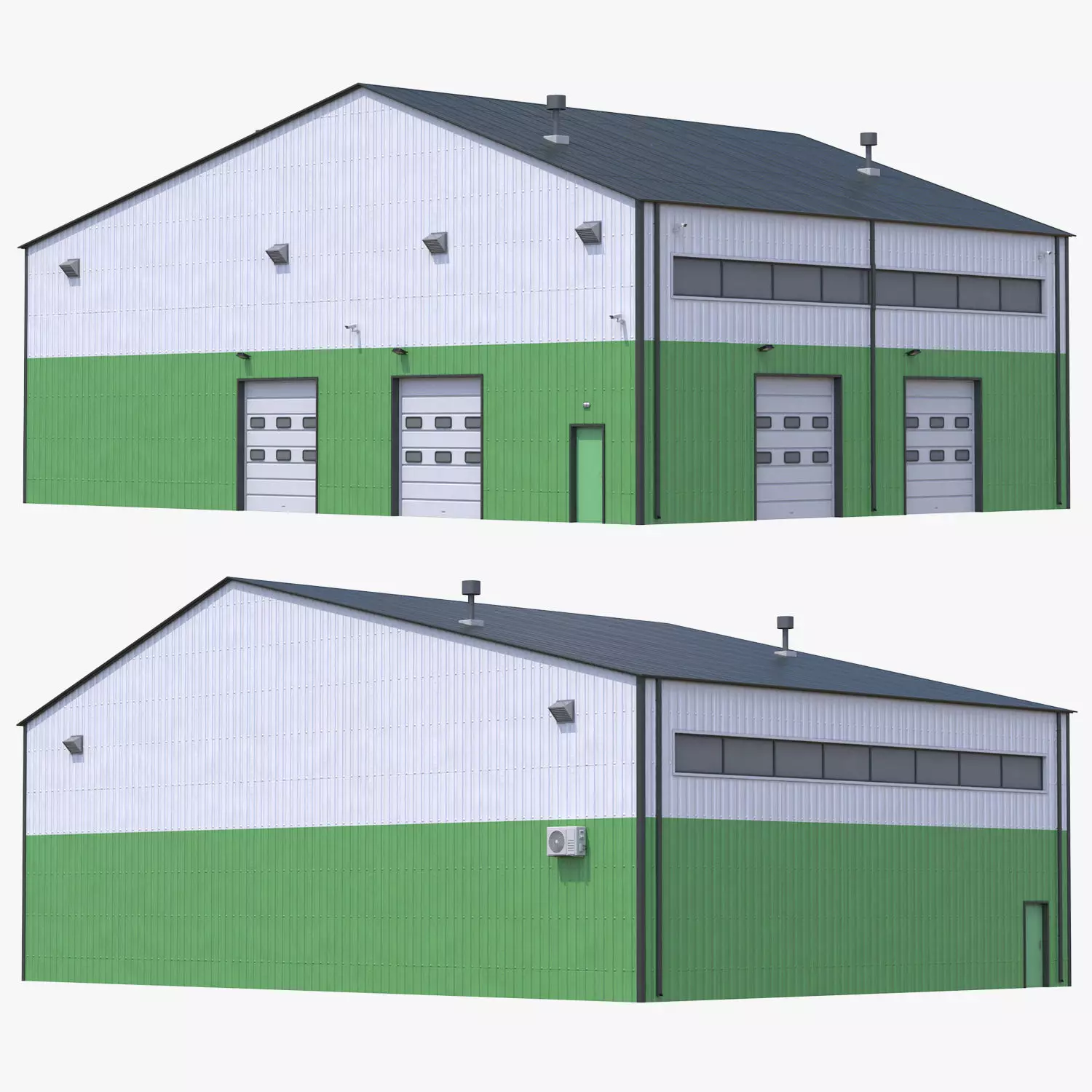 Industrial Building 13 Green Low-poly 3D model