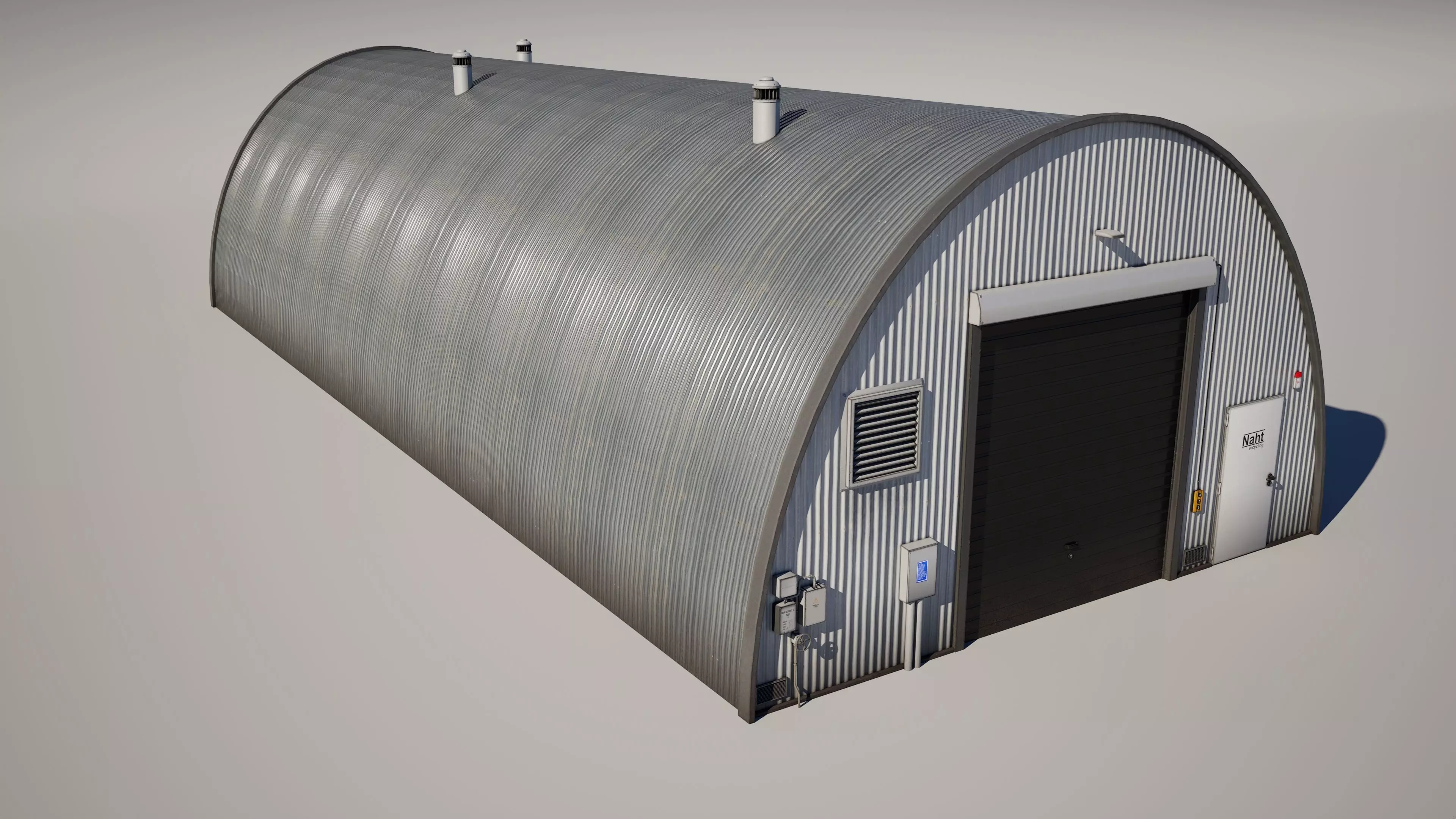 Detailed model of an industrial hangar building