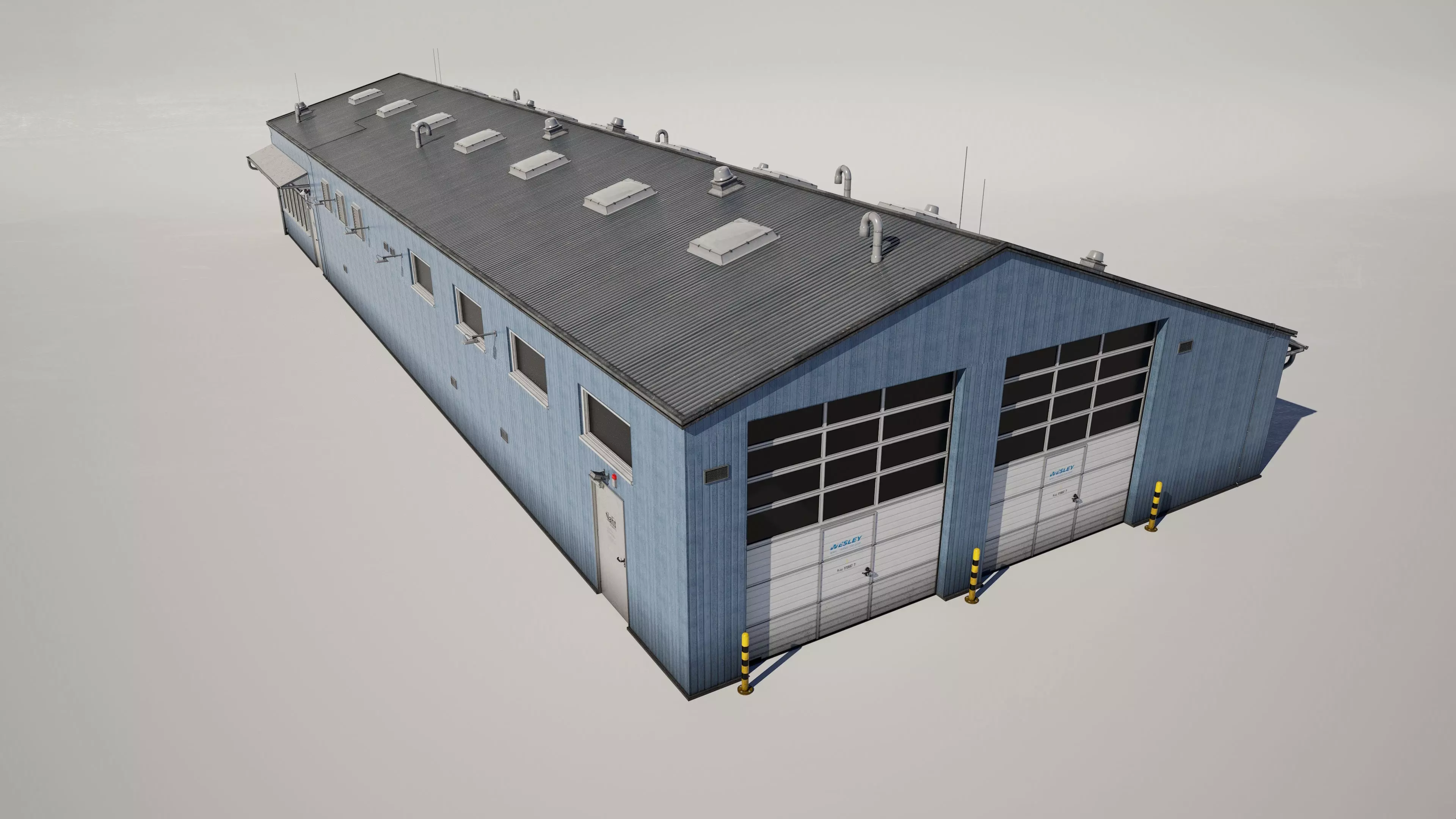Detailed model of a industrial workshop building garage