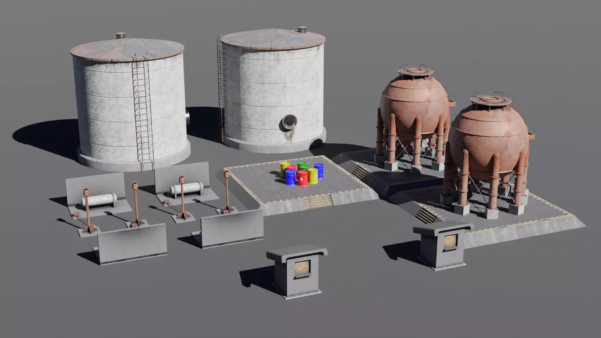 Here is a pack of some buildings that you can find on a classic industrial site.This package contains 9 different models ready to be used in any 3D software.All objects have already prepared materials and textures in 2K/ 2048 px resolution.PBR materials have 6 different textures per material :