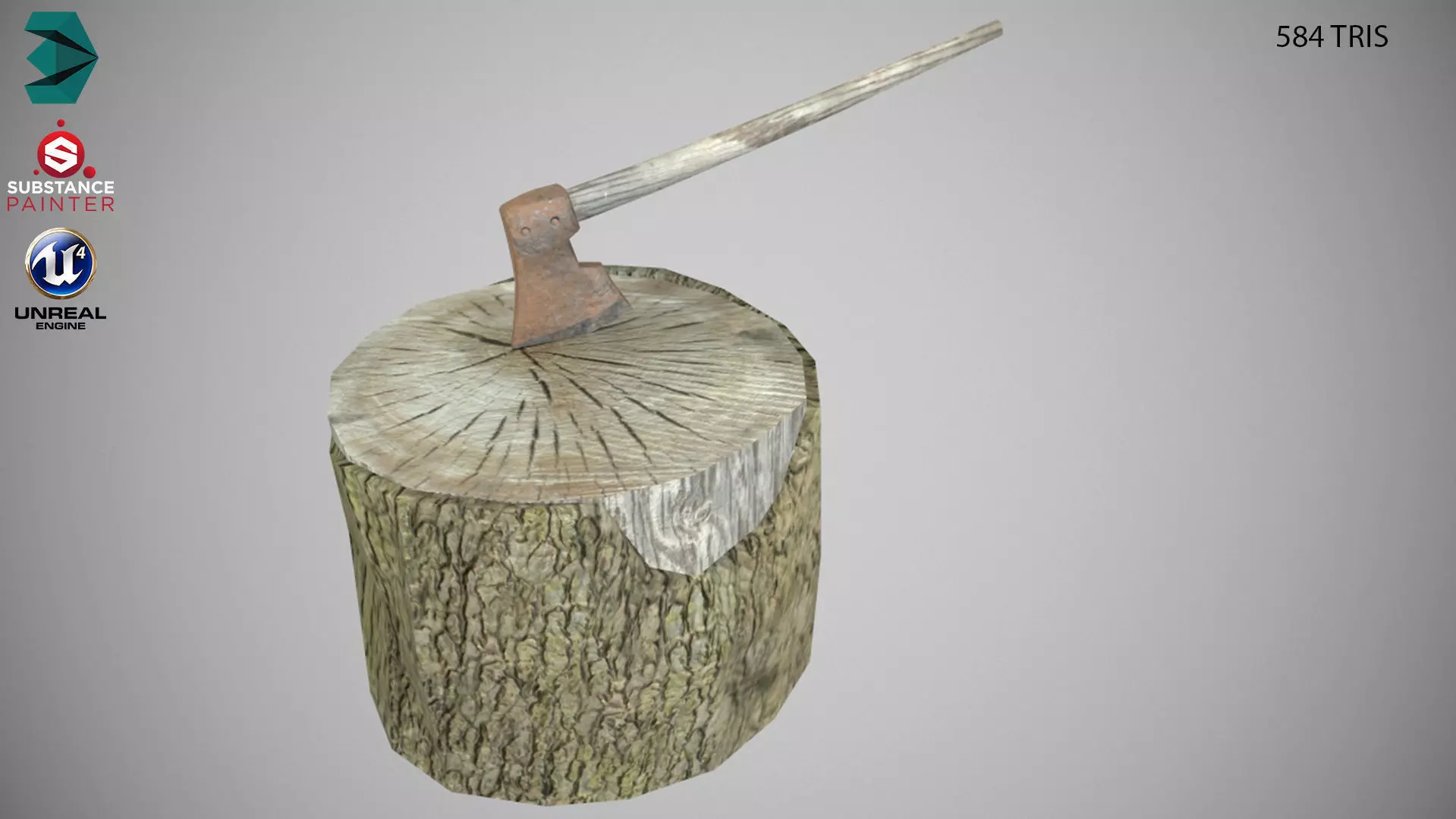 Low Poly Tree Stump Axe PBR Low-poly 3D model