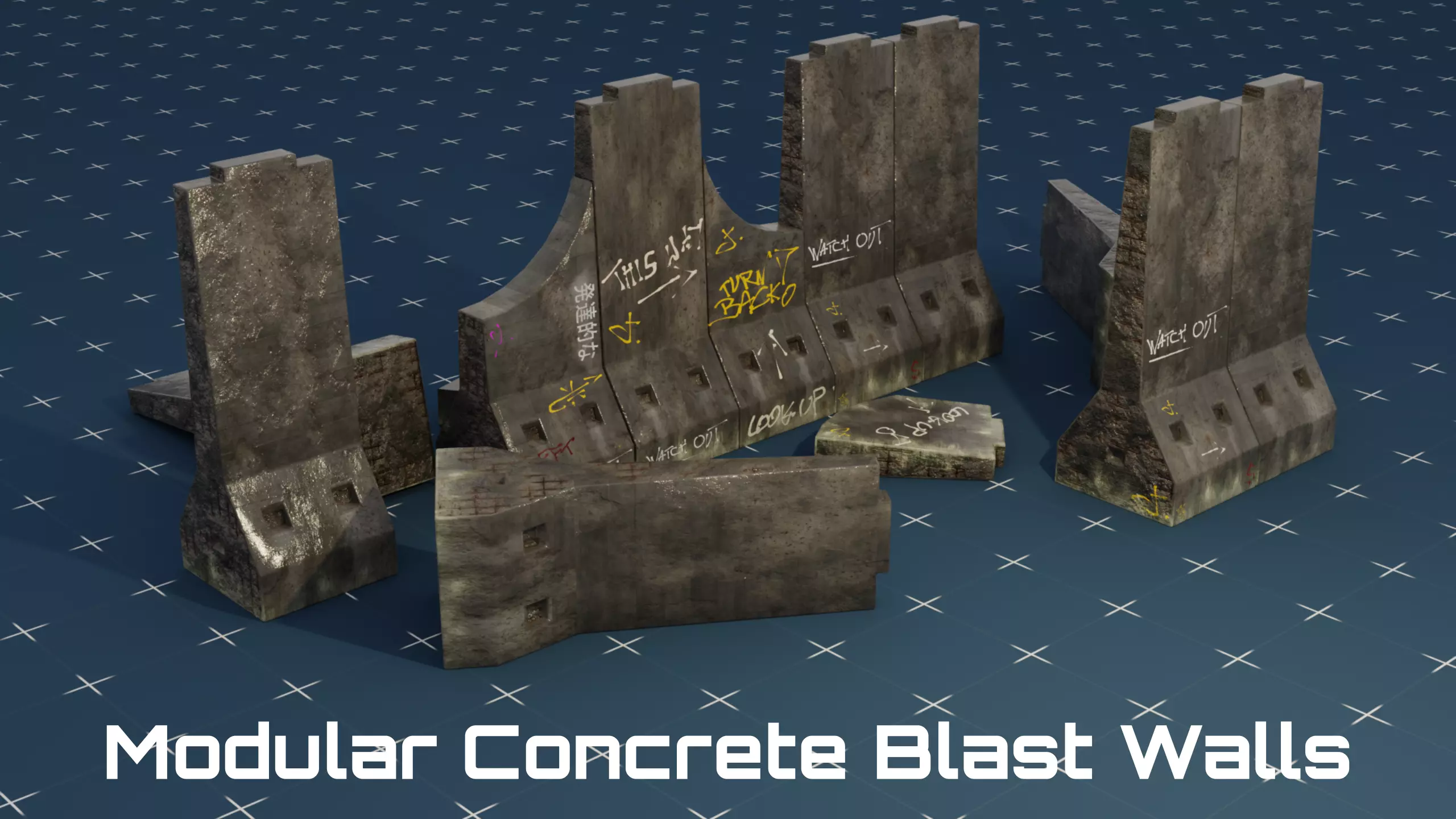 * Concrete Blast Wall 01A - 686 Verticies * Concrete Blast Wall 01B - 686 Verticies * Concrete Blast Wall 01C - 686 Verticies * Concrete Blast Wall 01D - 719 Verticies * Concrete Blast Wall 01E - 138 Verticies