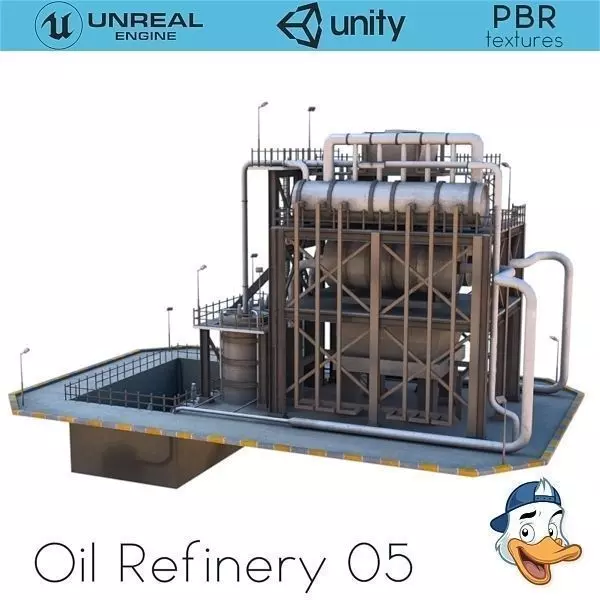 Low poly game-ready 3d model of an Oil Refinery