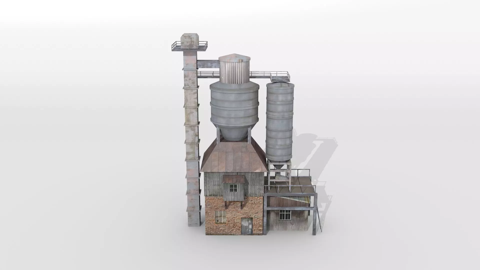 A detailed model of an old concrete mixing plant. Textures and materials are included. Other formats include extensible 3D.
