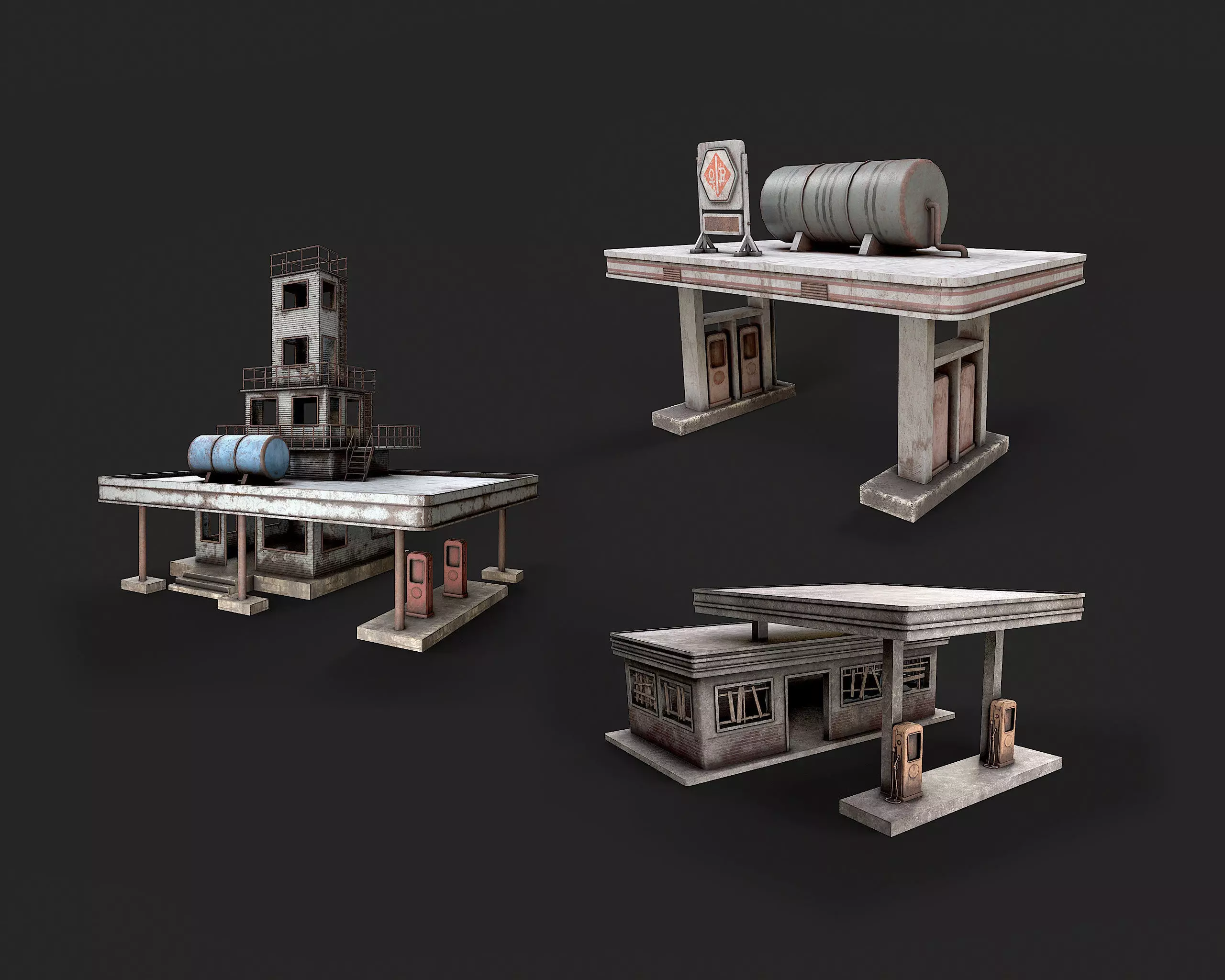 Post Apo Gas Station Collection Low-poly 3D model
