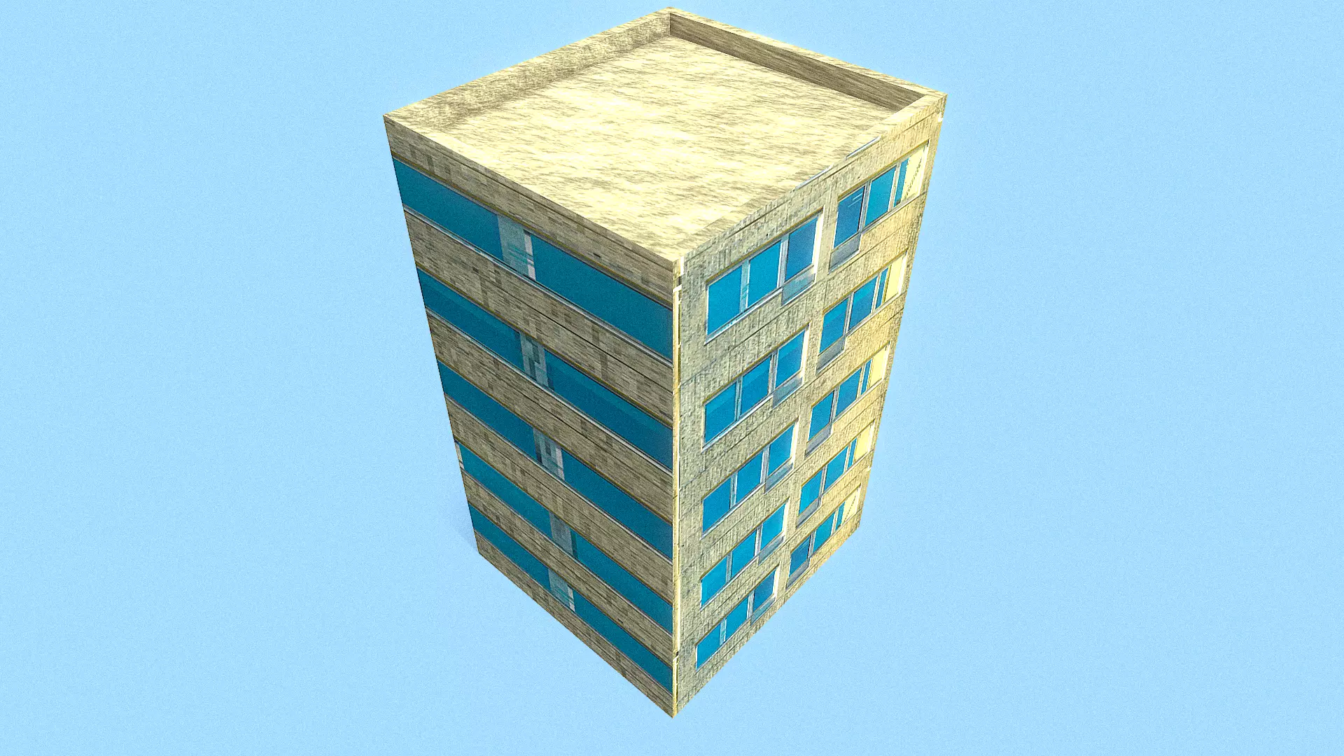 Retro Style Yellow Building Low-poly 3D model
