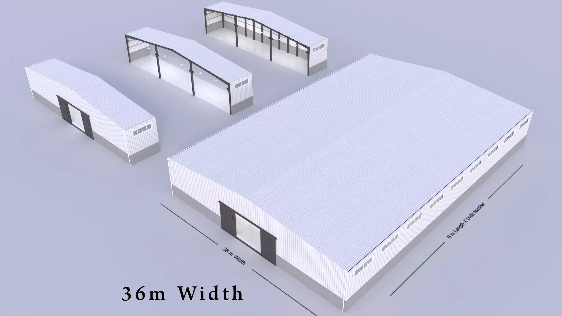 Steel Structure Warehouse exterior-interior Width 36m Length 6m * Units count
